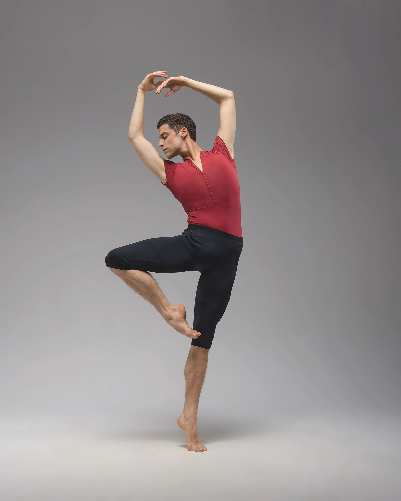 Maillot de ballet para chico. El modelo ENDO de Ballet Rosa es ideal para hombre en clase de danza. De manga corta con cremallera frontal.