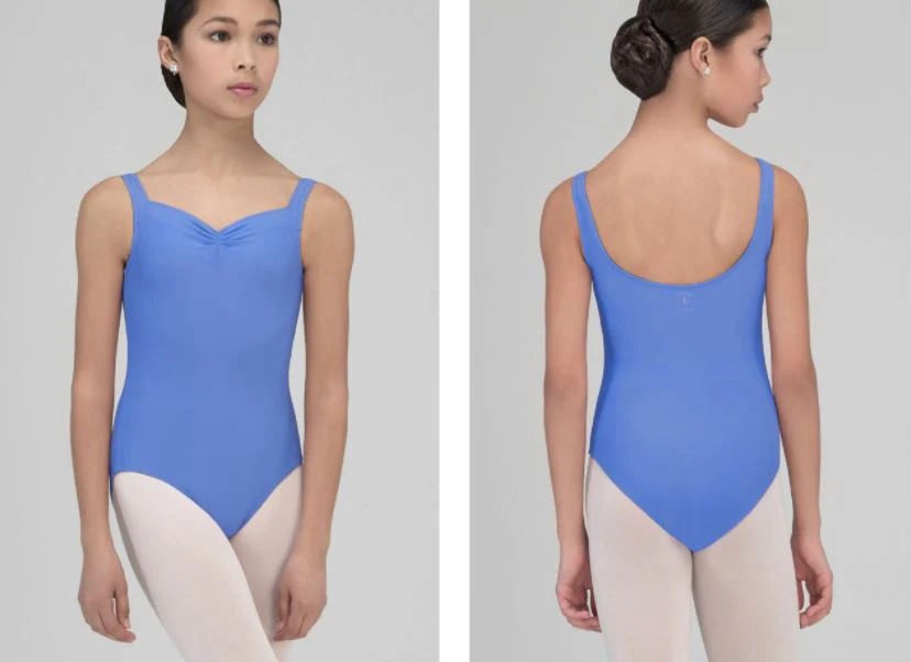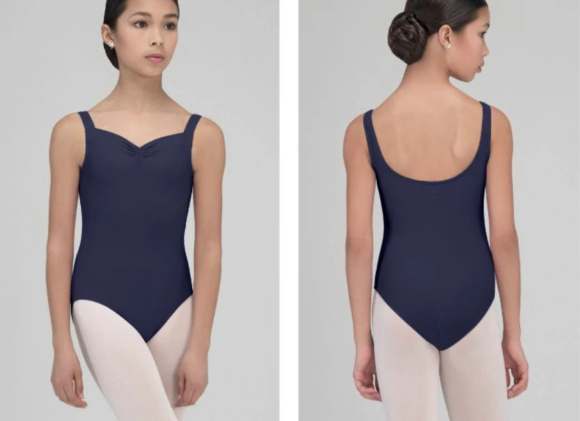 El modelo FAUSTINE de Wear Moi es perfecto para clase de danza. Ideal para uniformes y para el día a día. Un básico que no puede faltar. De tirante ancho con el escote corazón y espalda alta y redonda.