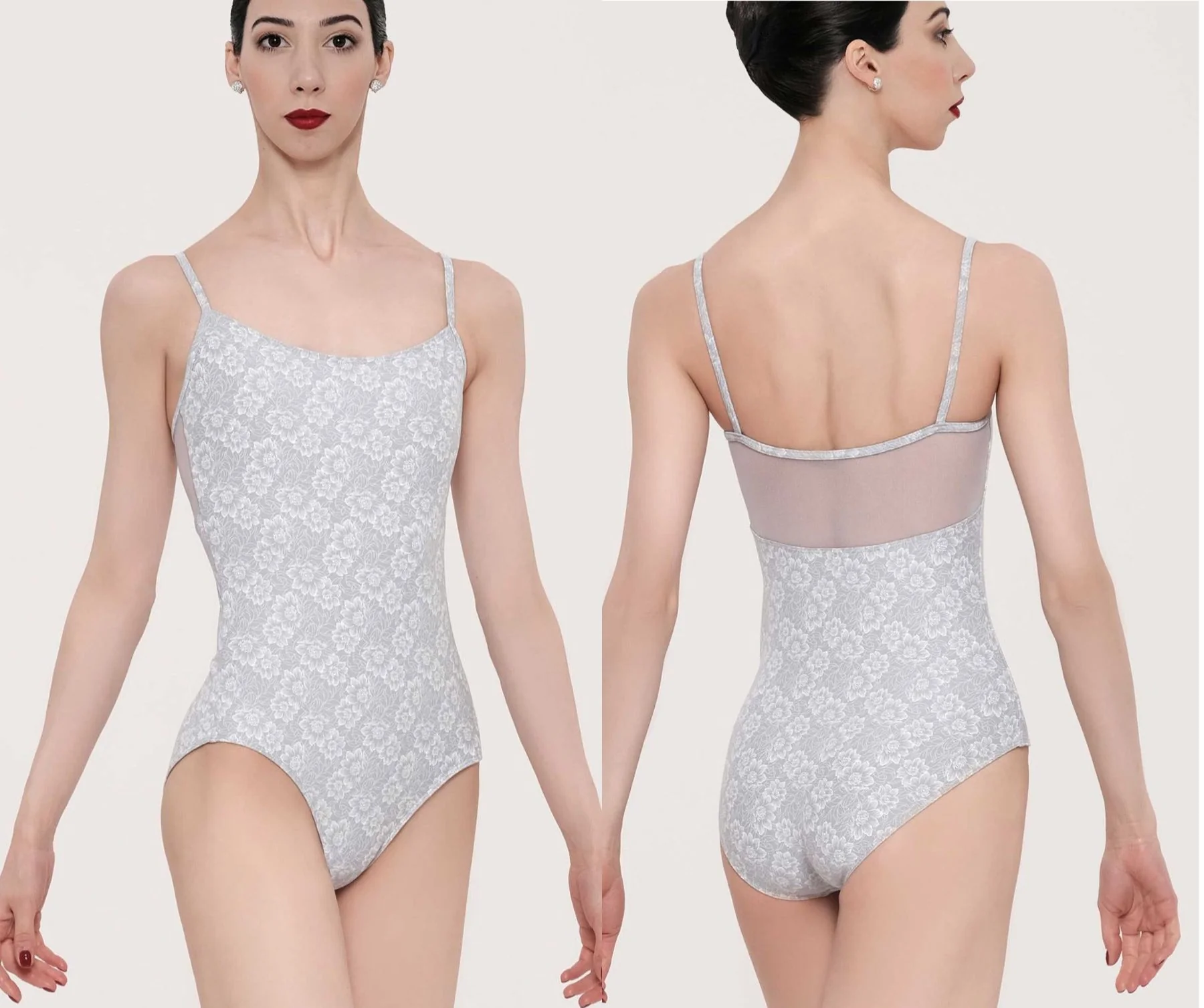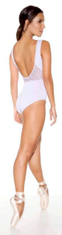 Maillot para adultos de ballet de tirantes con espalda en U y escote en forma de corazón con detalles de encaje.