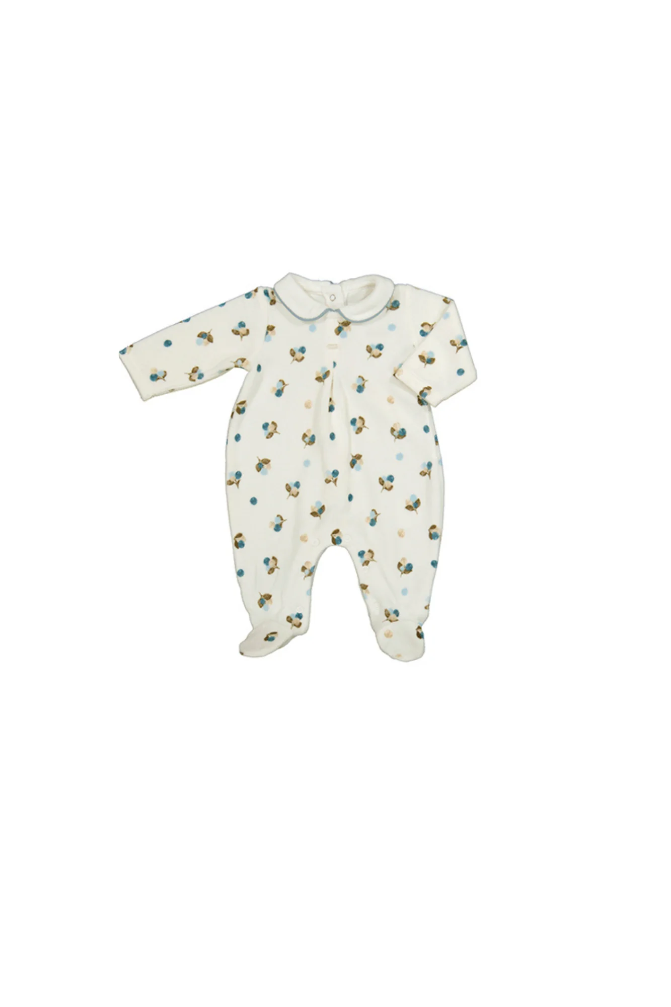 ¡Hermoso mameluco de estampado de flores! Cuello camisero redondo, manga larga, estampado de flores y cierre de botones a presion por atras y en la entrepierna para facilitar su puesta.