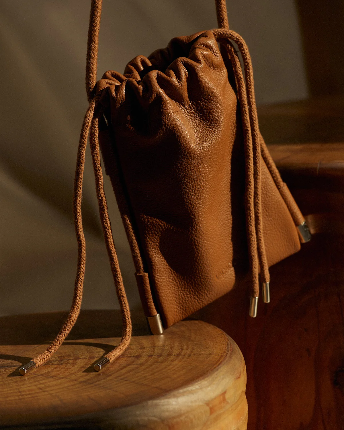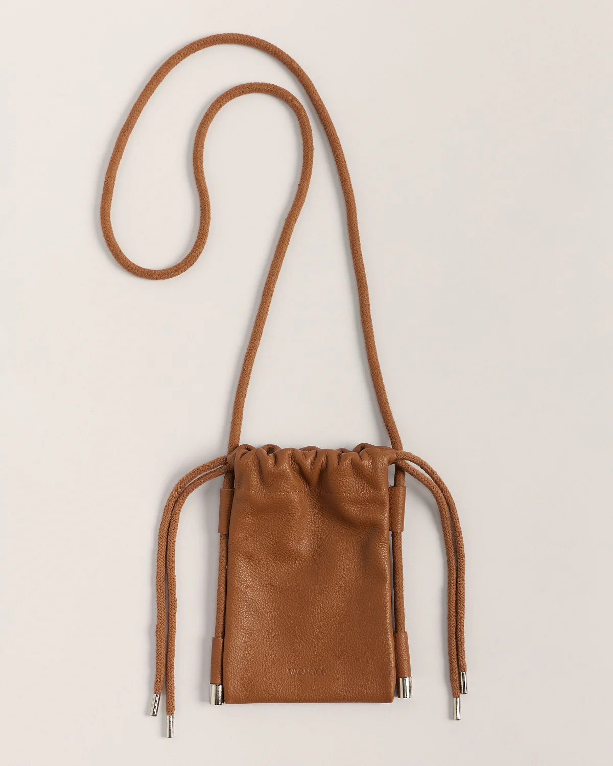 Mini Bag de cuero vacuno con grabado de marca.