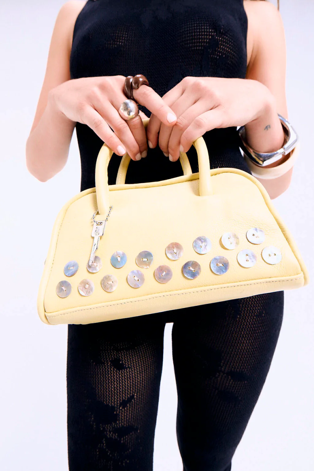 Minibag de tamaño pequeña. Posee cierre y bolsillo interior