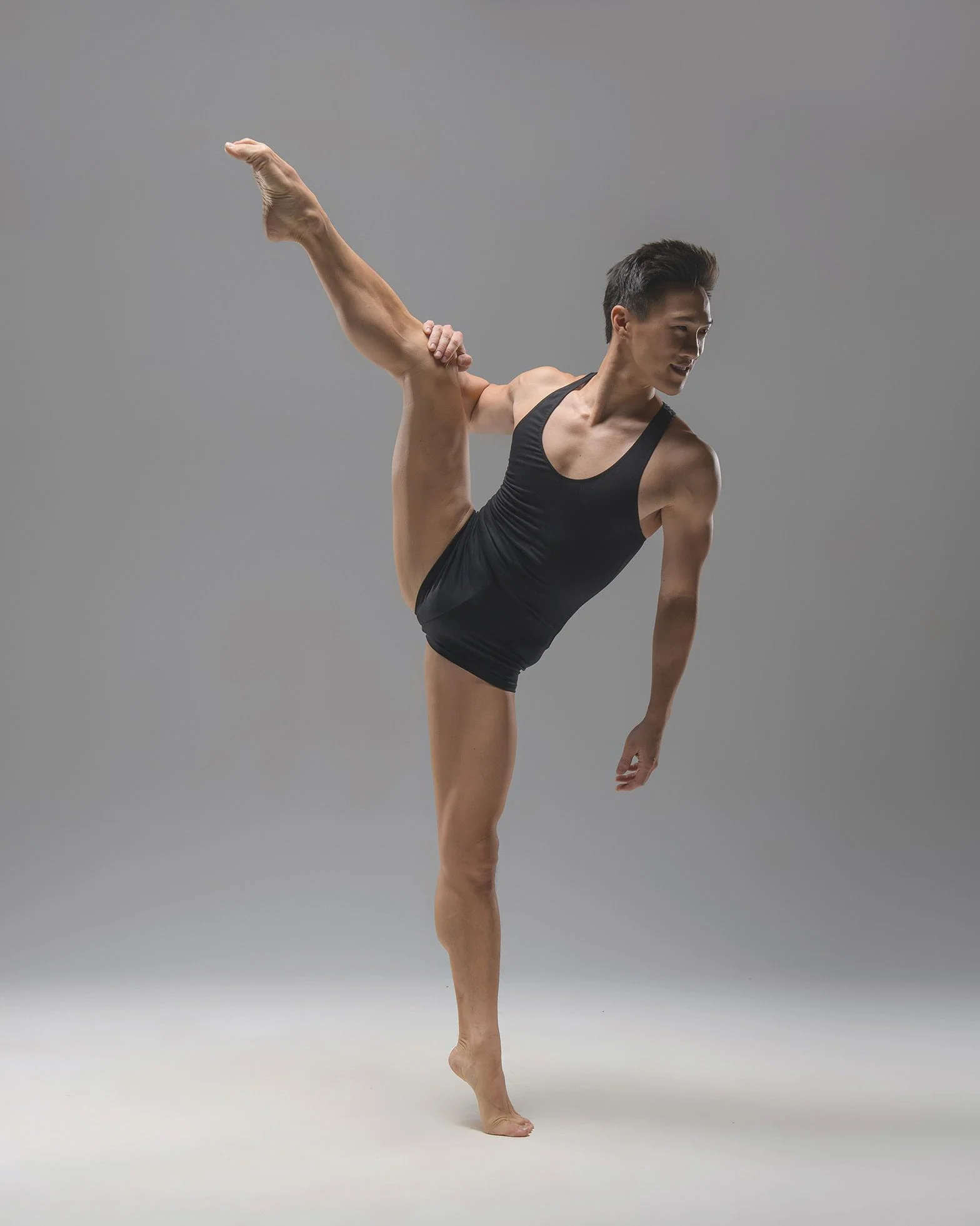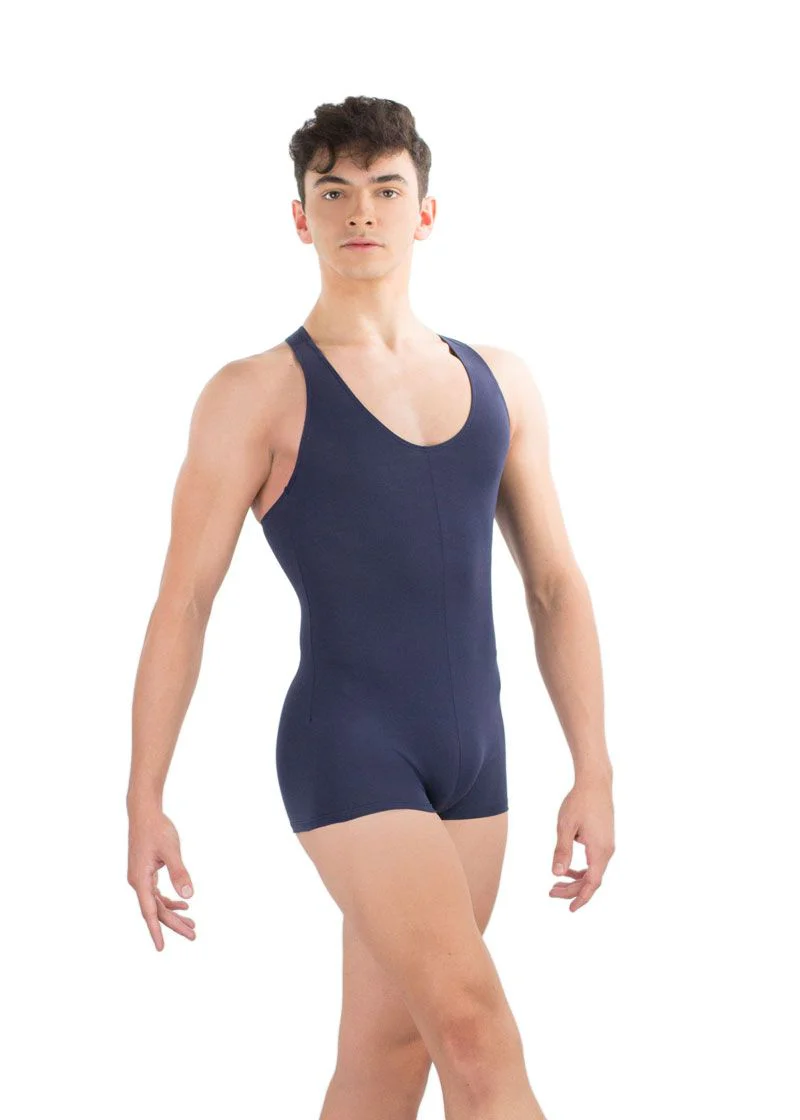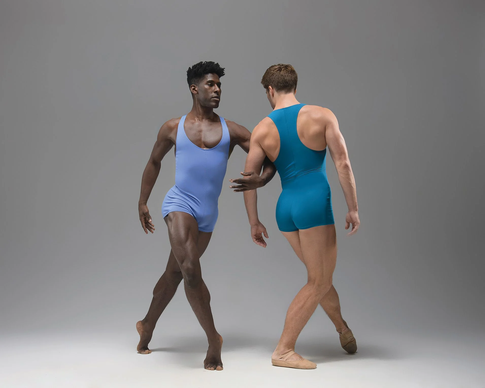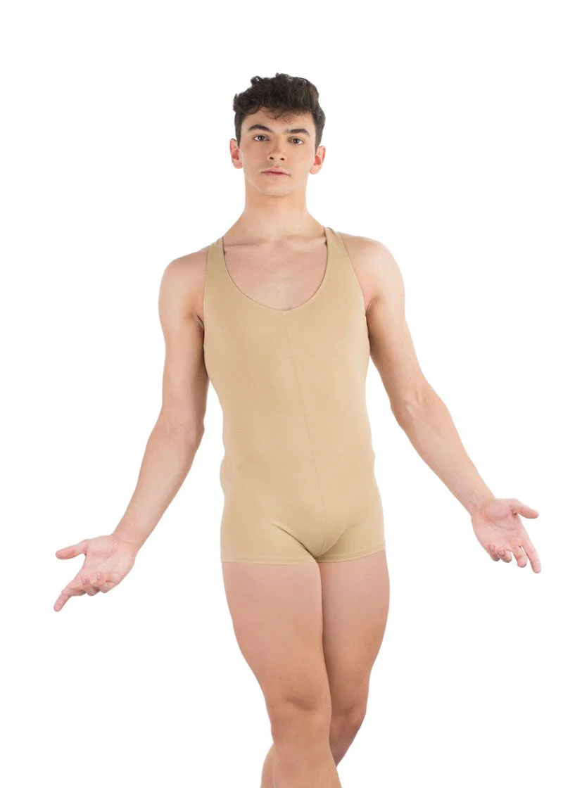Mono de ballet para chico. El modelo PATRICK de Ballet Rosa es ideal para hombre en clase de danza. De tirantes, con escote redondo muy pronunciado con malla corta. Perfecto para el día a día.