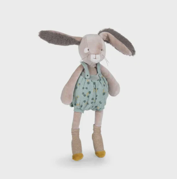 ¡Encantador conejo de tamaño pequeña ideal para llevar a todos lados!¡El compañero perfecto para los niños en sus ratos de juego y a la hora de descansar! Aporta consuelo y ayuda al bebé a desarrollar habilidades emocionales, dulce cara bordada, brazos y piernas largas listas para abrazar, cvestido con su ropa en color verde, calcetines y suaves orejas de terciopelo ¡El compañero perfecto para todos los aventureros!