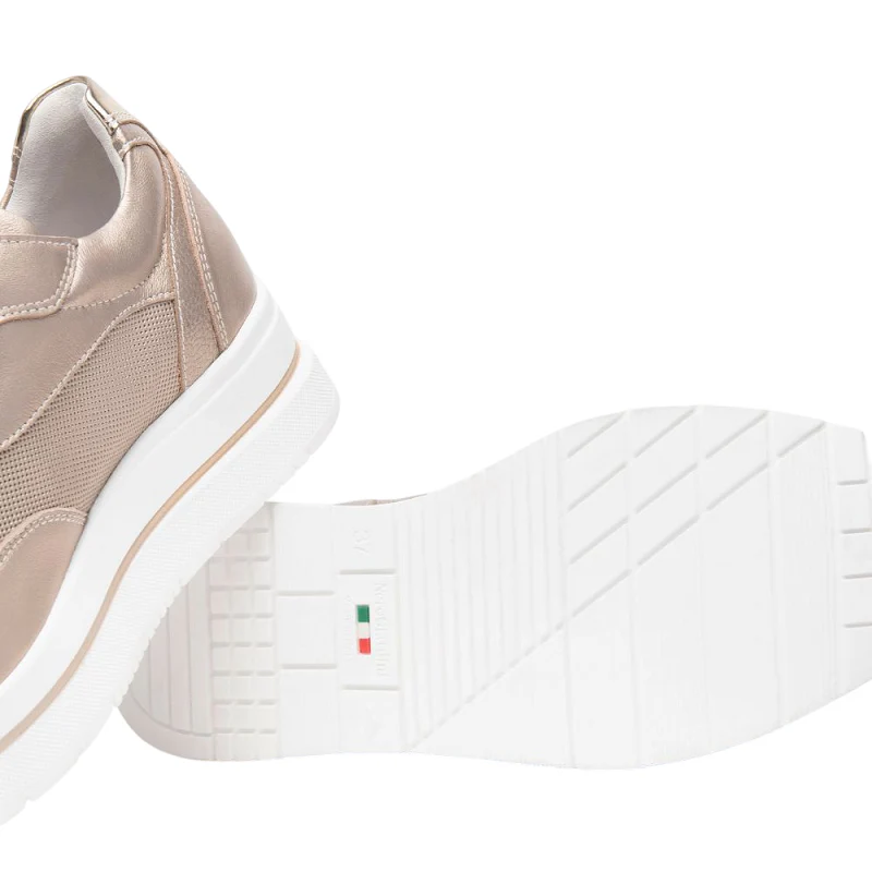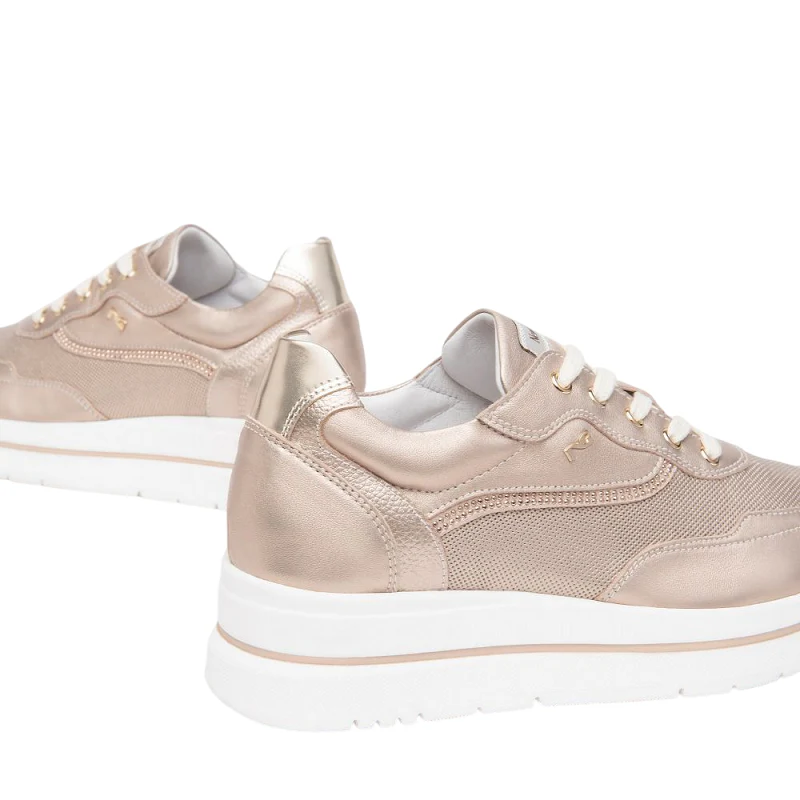 Sneakers de mujer Nero Giardini E512903D, de piel con cierre de cordones. Incluyen plantilla extraible y suela de goma. Calzado cómodo y duradero para un look casual y elegante.