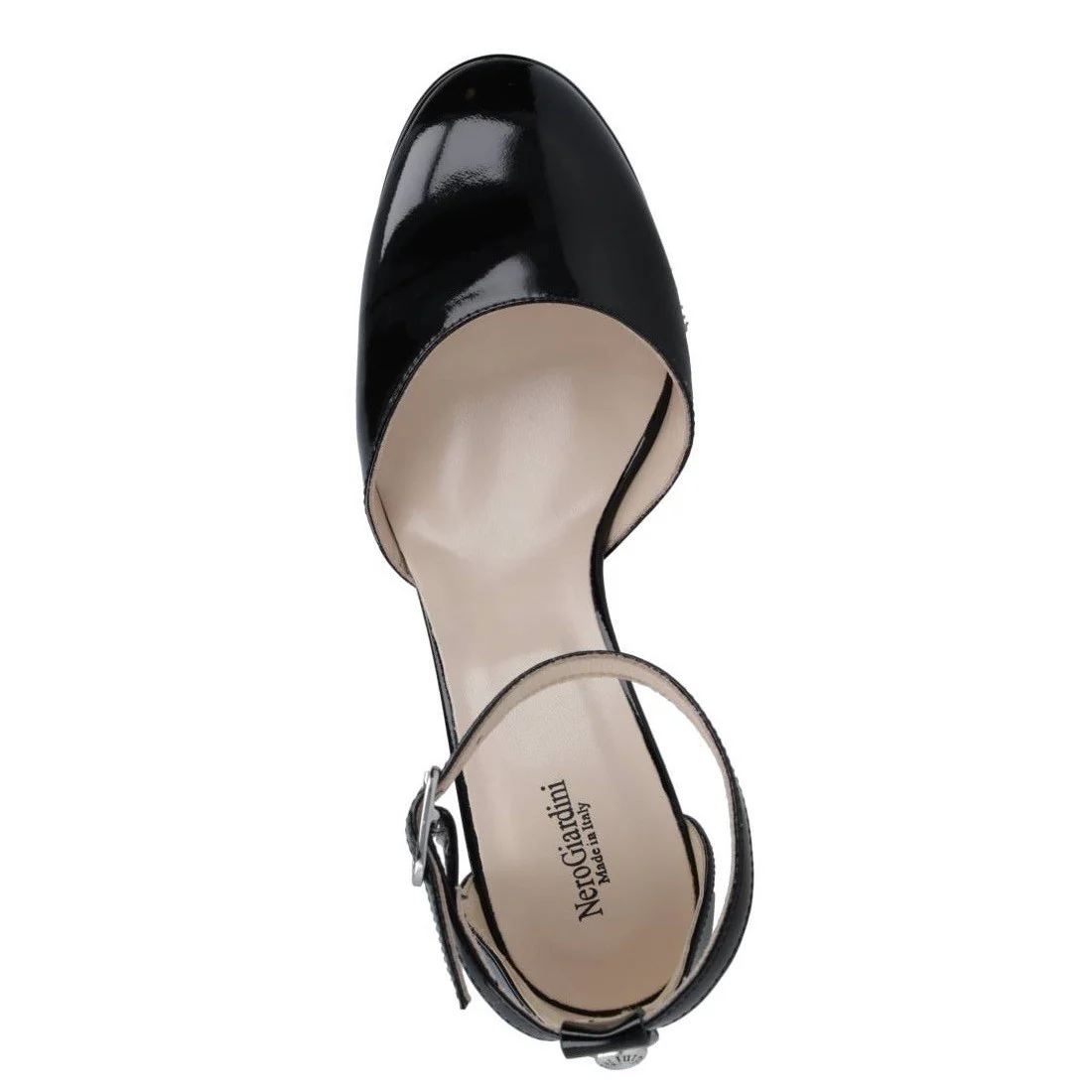 Todo el estilo de la moda italiana en estos zapatos con plataforma de la marca NERO GIARDINI. Cierre con hebilla en pulsera tobillera.