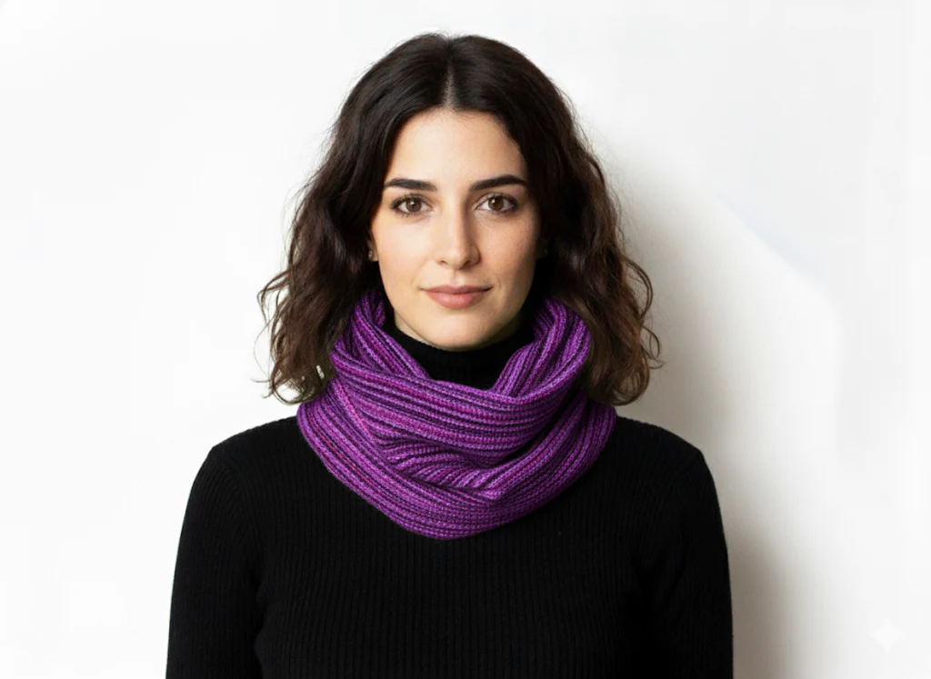 Una bufanda de tubo tejida a mano en algodón puro para quienes aprecian la tradición y la comodidad. Su diseño artesanal la convierte en el complemento perfecto para cualquier ocasión.