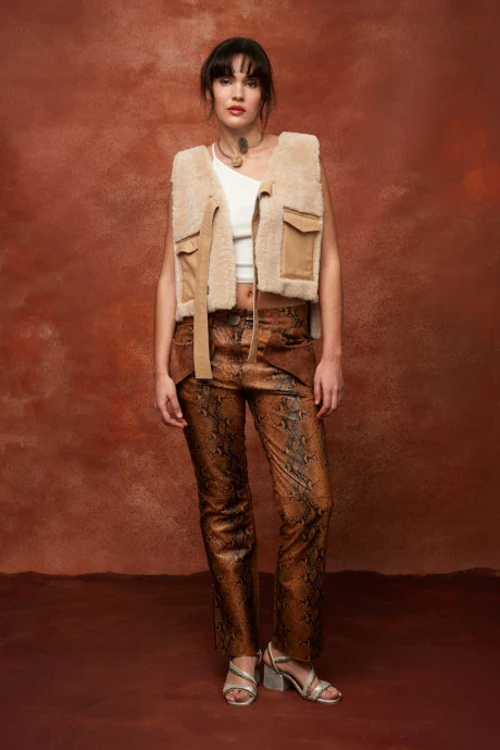 Tiro medio-bajo, ajustable. Pierna amplia tipo palazzo.