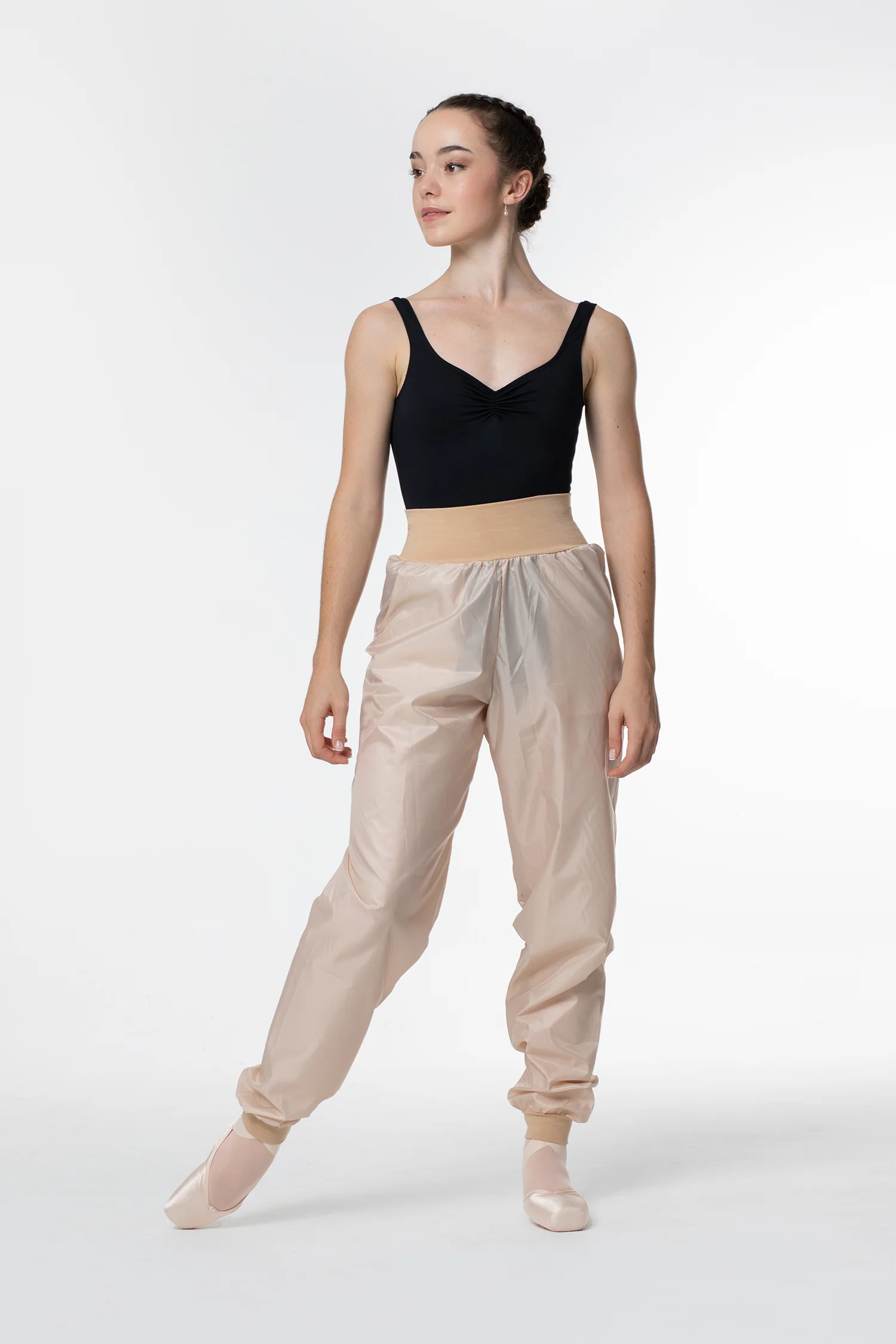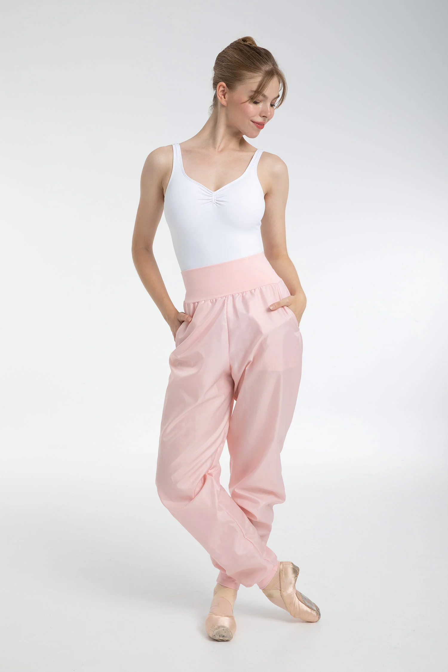 Pantalones de calentamiento efecto sauna con bolsillos de Intermezzo para ballet y danza. En tejido no transpirable con dobladillos elásticos y cintura alta. Cinturilla y puños de Algodón o Supplex. Su tejido no transpirable te permite mantener la temperatura y proteger tus músculos del frío en tus ensayos y clases de danza. Ofrece máxima comodidad para todo tipo de danza y ejercicios. Perfectos para bailarinas. • Tiro alto • Con Bolsillos • Efecto Sauna (no transpirable) • De estilo holgado • Para calentamiento