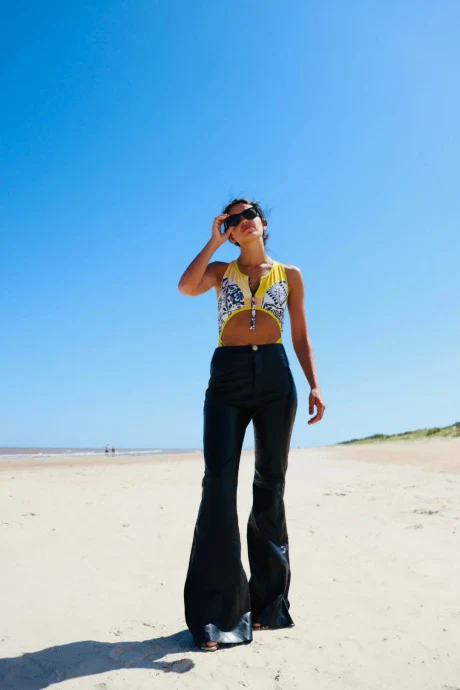 Ha llegado un nuevo modelo de Leather Pants que redefine lo que conocemos como jeans. Este pantalón, con corte formal y acampanado en la parte inferior, ofrece un estilo sofisticado y elegante, muy alejado de la estructura típica de un vaquero.