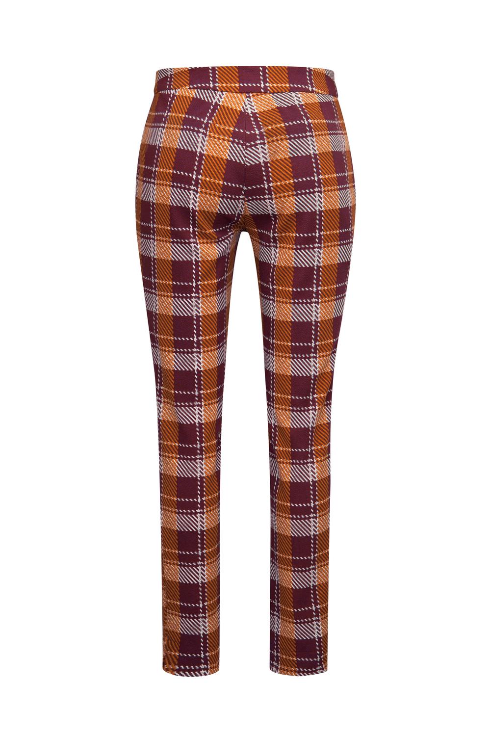 - Pantalón a cuadros con pretina, botón a contraste, cremallera oculta y bolsillos funcionales en los laterales.