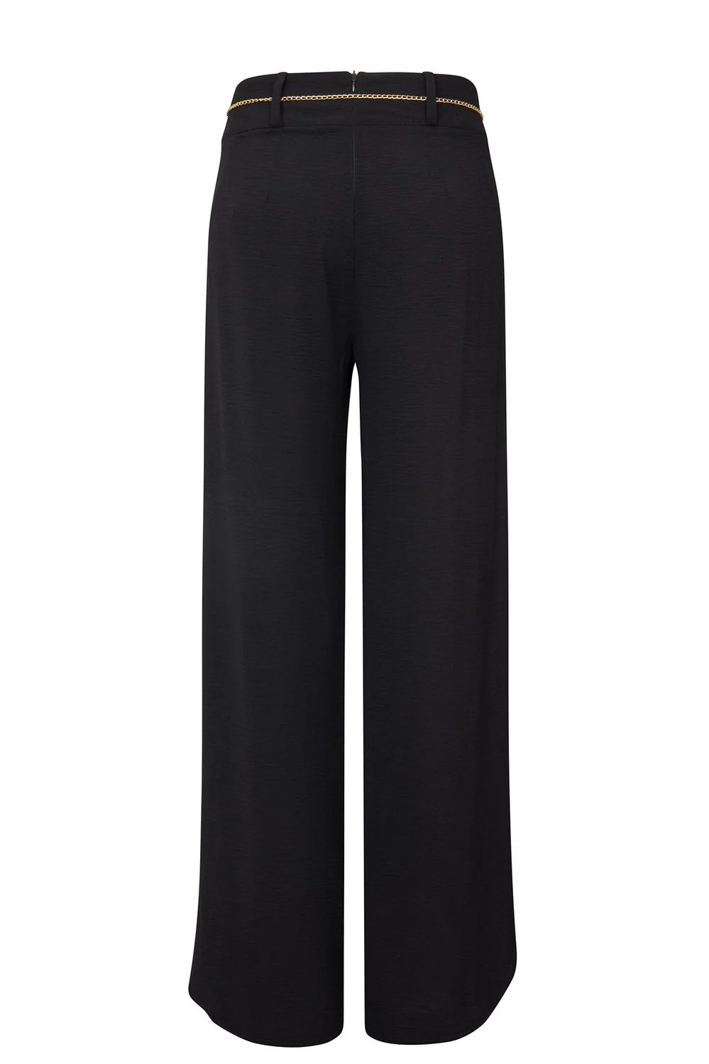- Pantalón largo con pretina, aberturas en piernas, cierre invisible en espalda y cinturón incluido.