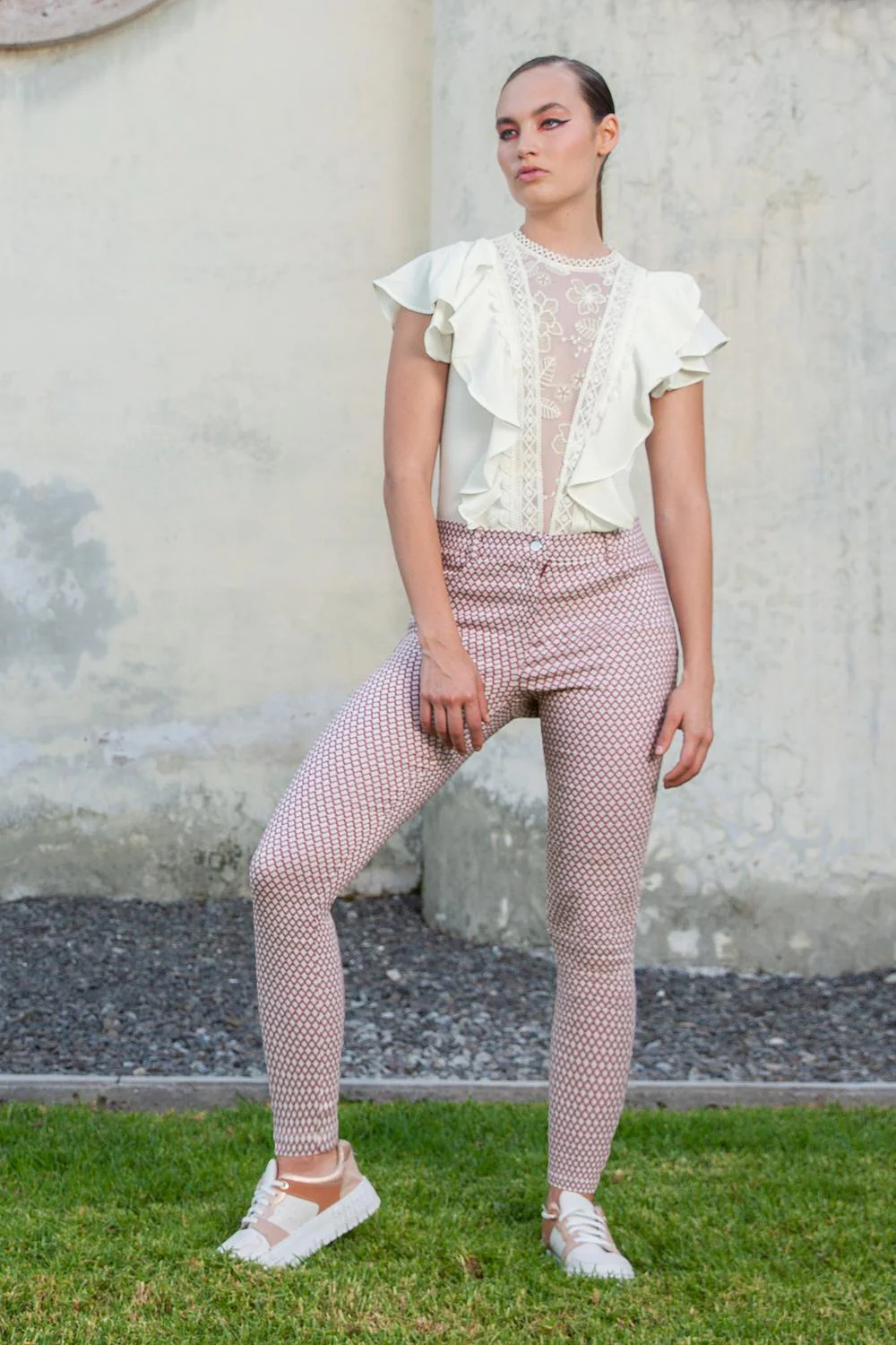 Pantalón estampado de tiro medio, fit ajustado y bolsillos frontales. 21-1128