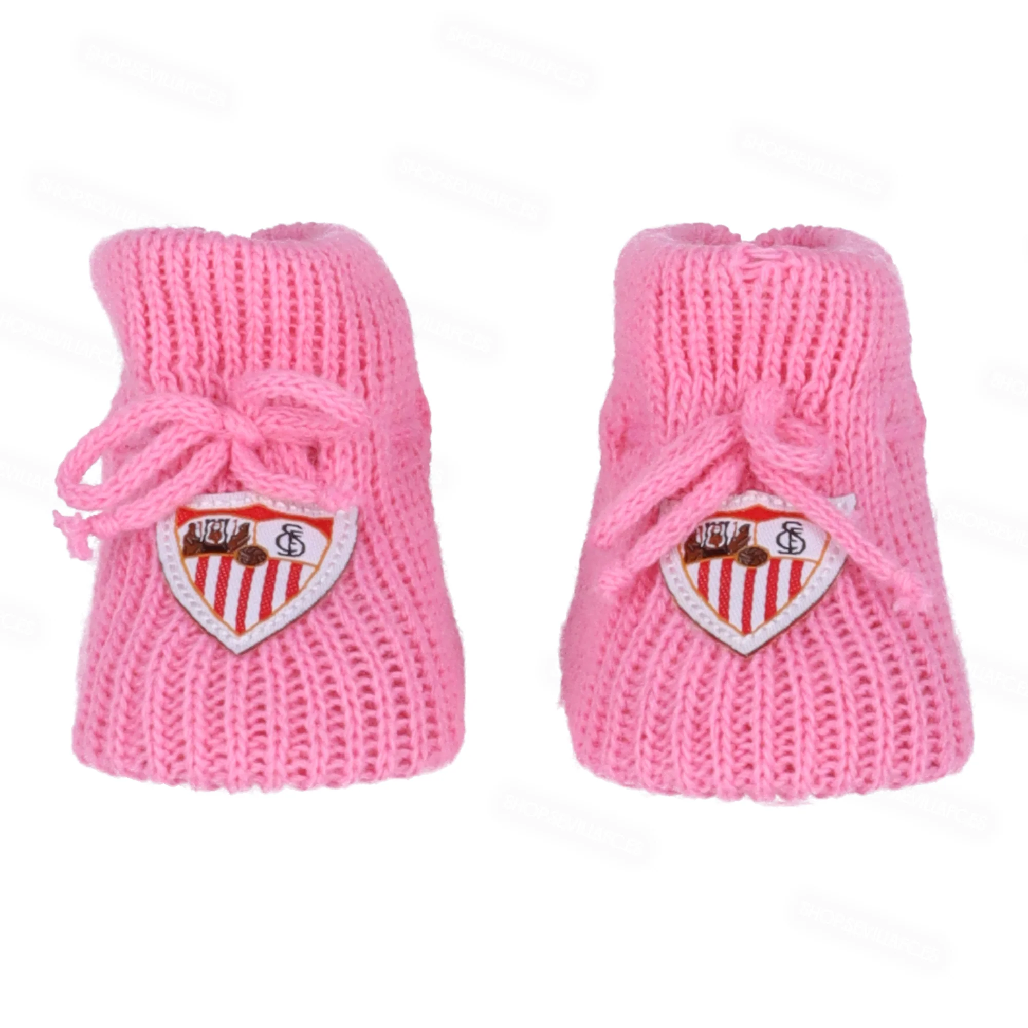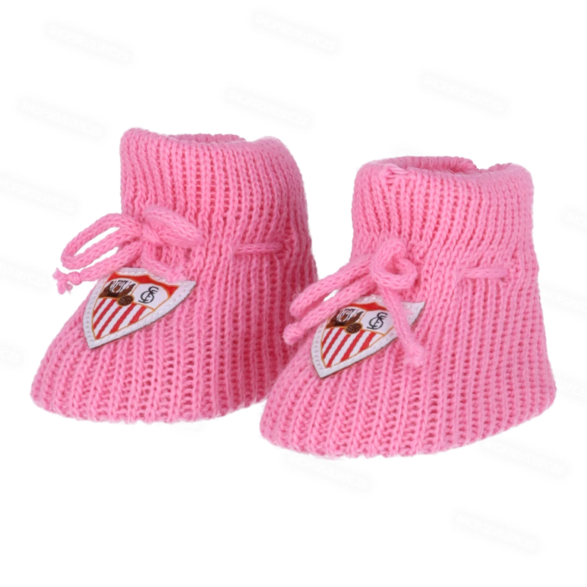¡Prepara a los futuros sevillistas desde pequeños con estos adorables patucos rosas de punto! Con el escudo del Sevilla FC a todo color y cordones blancos. Comodidad y estilo para los bebés. ¡El amor por el Sevilla FC empieza desde cuna!