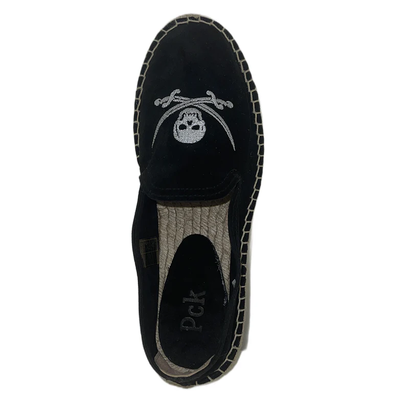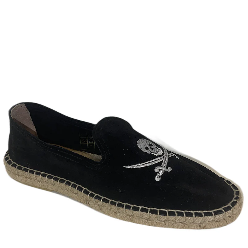 Estas alpargatas modelo Pirata de Peacock combinan comodidad y estilo veraniego con un diseño único. Su color negro vibrante y el dibujo de una calavera de pirata en la pala aportan un toque distintivo y atrevido: ideal para quienes buscan un calzado fresco y con personalidad. Perfectas para el verano, ofrecen ligereza y transpirabilidad asegurando confort durante todo el día.