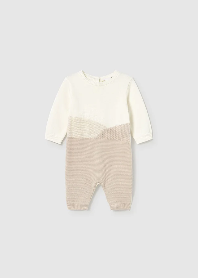 ¡Encantador y unico mameluco de manga larga sin pies! De cuello redondo, manga larga, tejido de punto tricotosa de tacto suave y agradable, cierre de botones en la espalda y botones a presión en la entrepierna para facilitar la puesta de la prenda. Diseño tejido.