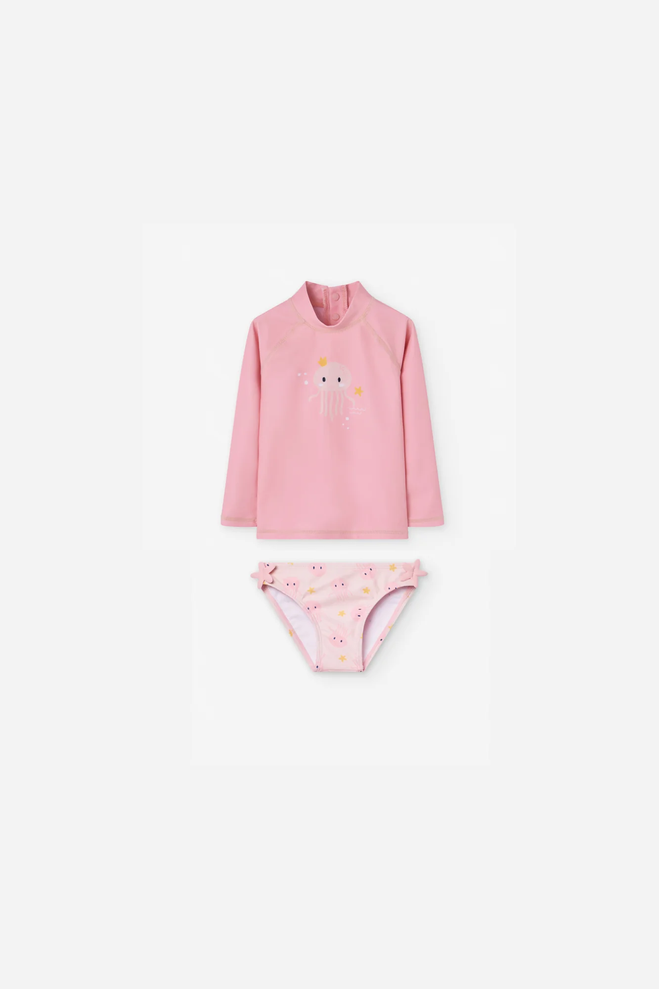 ¡Hermoso traje de baño de rashguard con su calzoncito a juego! ¡Divino y divertido para disfrutar los dias de calor en el agua! Traje de baño de dos piezas combinadas, diseño estampado. Blusa de cuello redondo y manga larga con su calconcito a juego, detalle de lazos en los costados y elástico en cintura y piernas para mejor ajuste y comodidad.