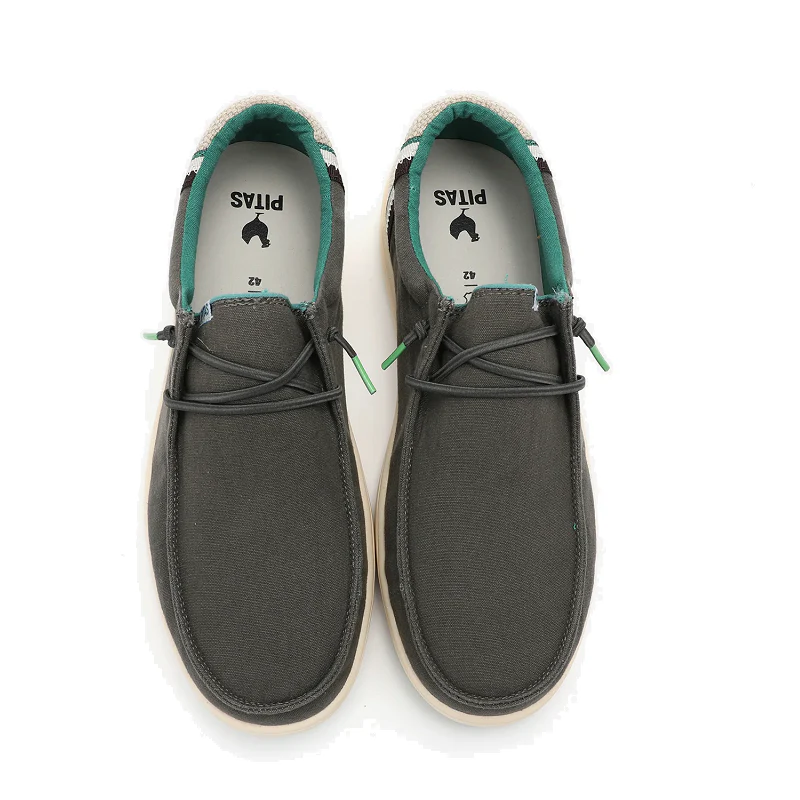 Descubre la comodidad única de los zapatos pitas modelo WALLABI CANA GRIS. Hechos con corte de algodón lavado y forro de algodón y poliéster, su plantilla de EVA forrada en piel y su suela de EVA y goma antideslizante te brindan un calce cómodo y seguro. Además, sus cordones elásticos permiten un calce rápido.