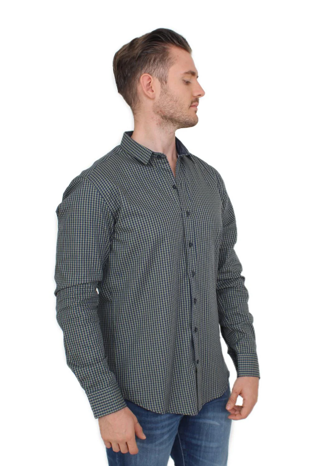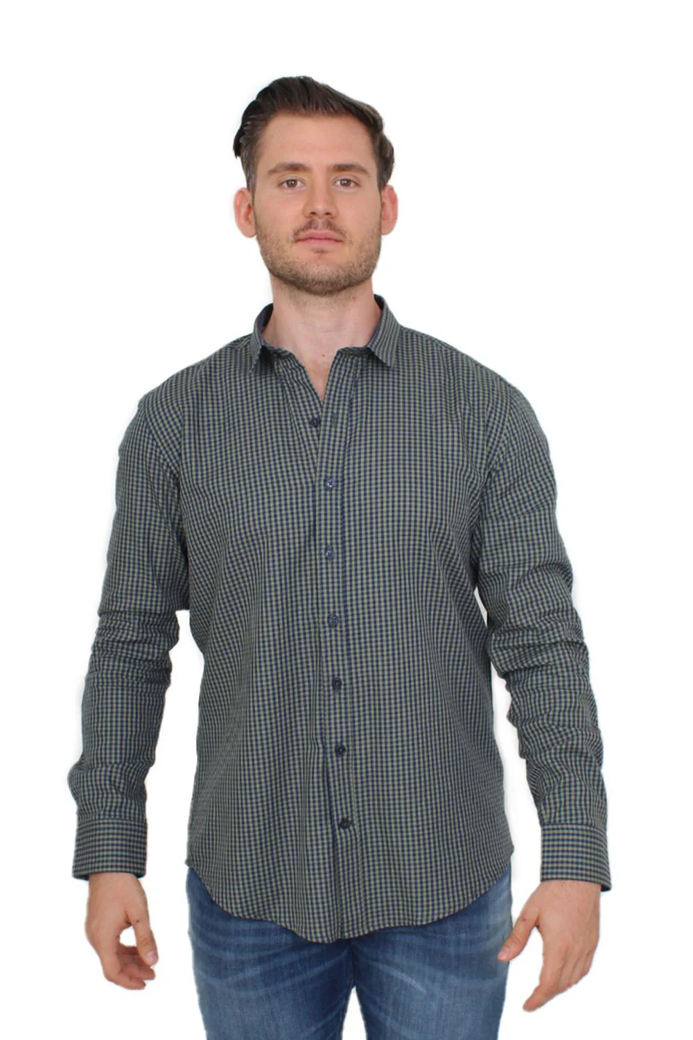 Camisa para caballero manga larga lisa, cierre de boton, confeccionada 80% algodon 20% poliester.