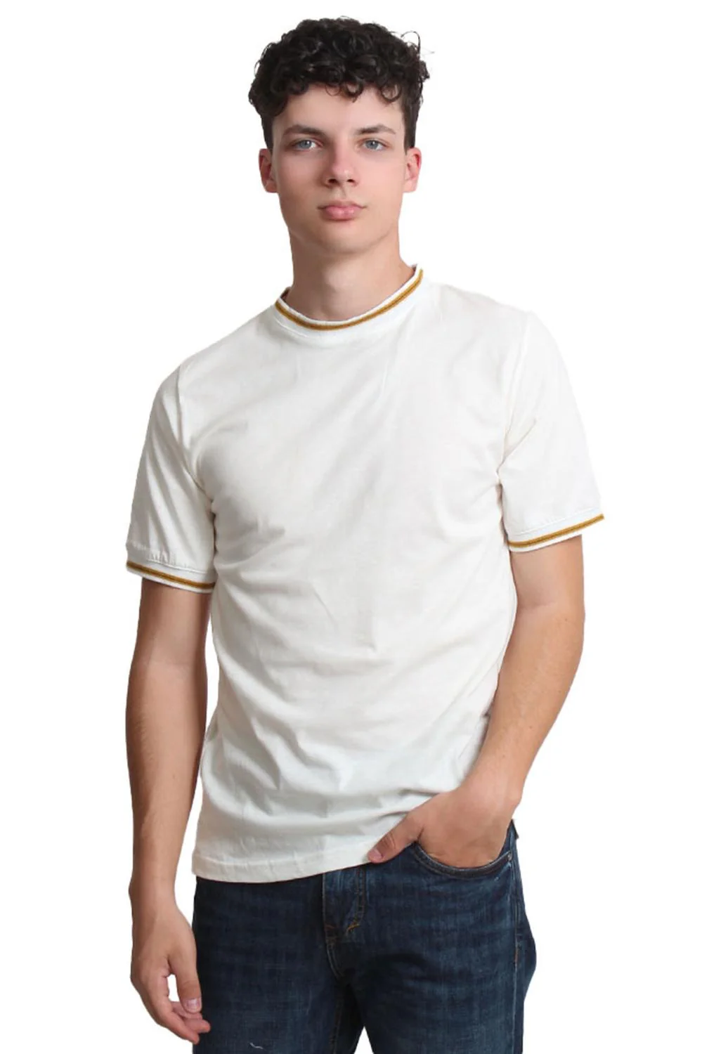 PLAYERA CABALLERO CUELLO CON CARDIGAN COLOR PERLA 100% ALGODÓN