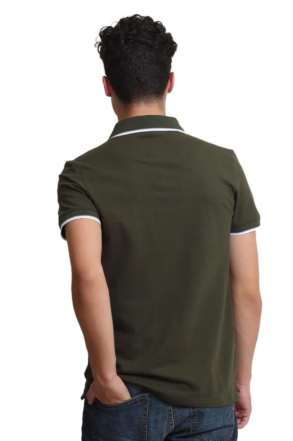 POLO CABALLERO COLOR VERDE OLIVO 50% ALGODÓN 50% POLIESTER