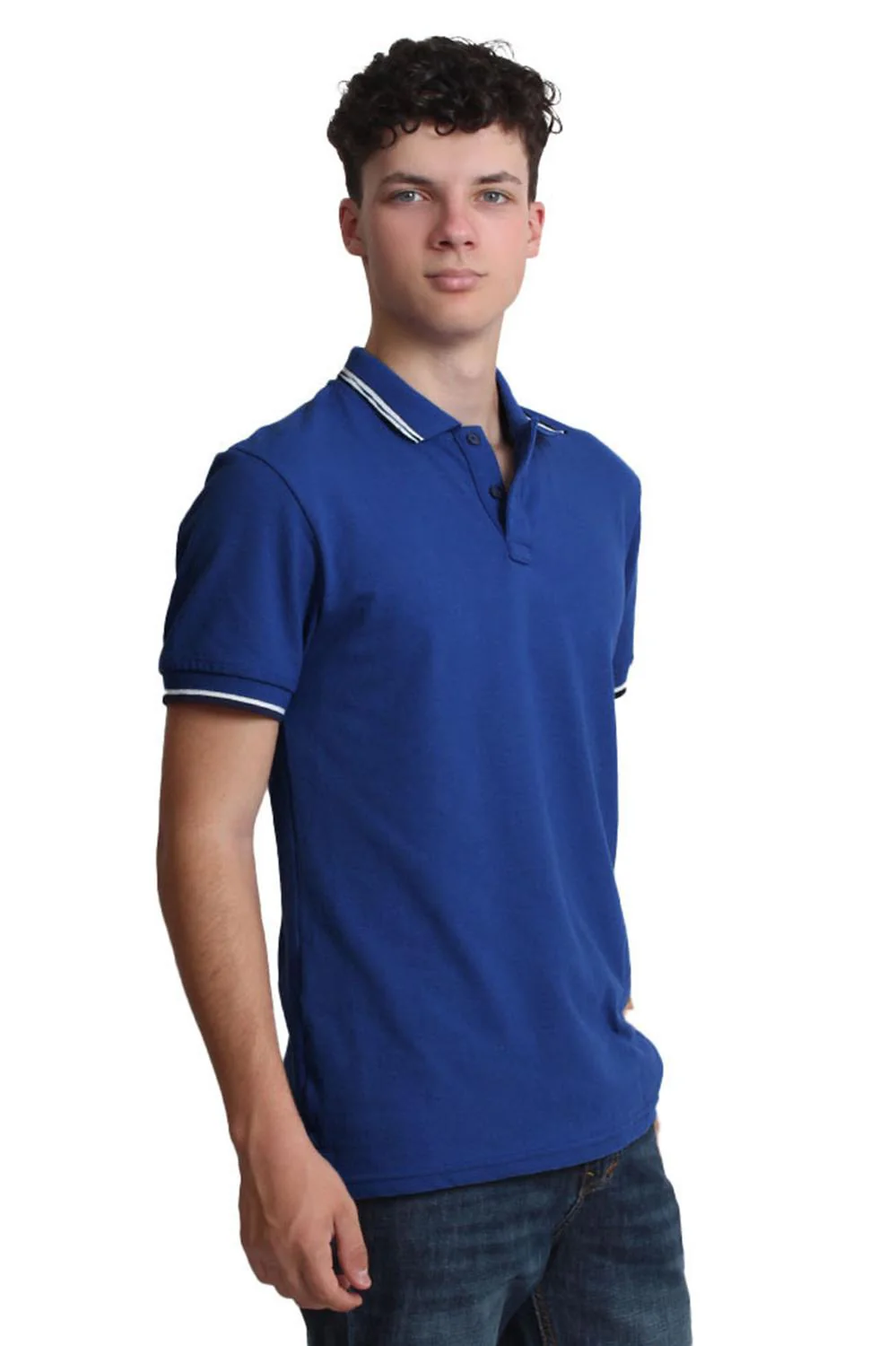 POLO CABALLERO COLOR AZUL PIZARRA 50% ALGODÓN 50% POLIESTER