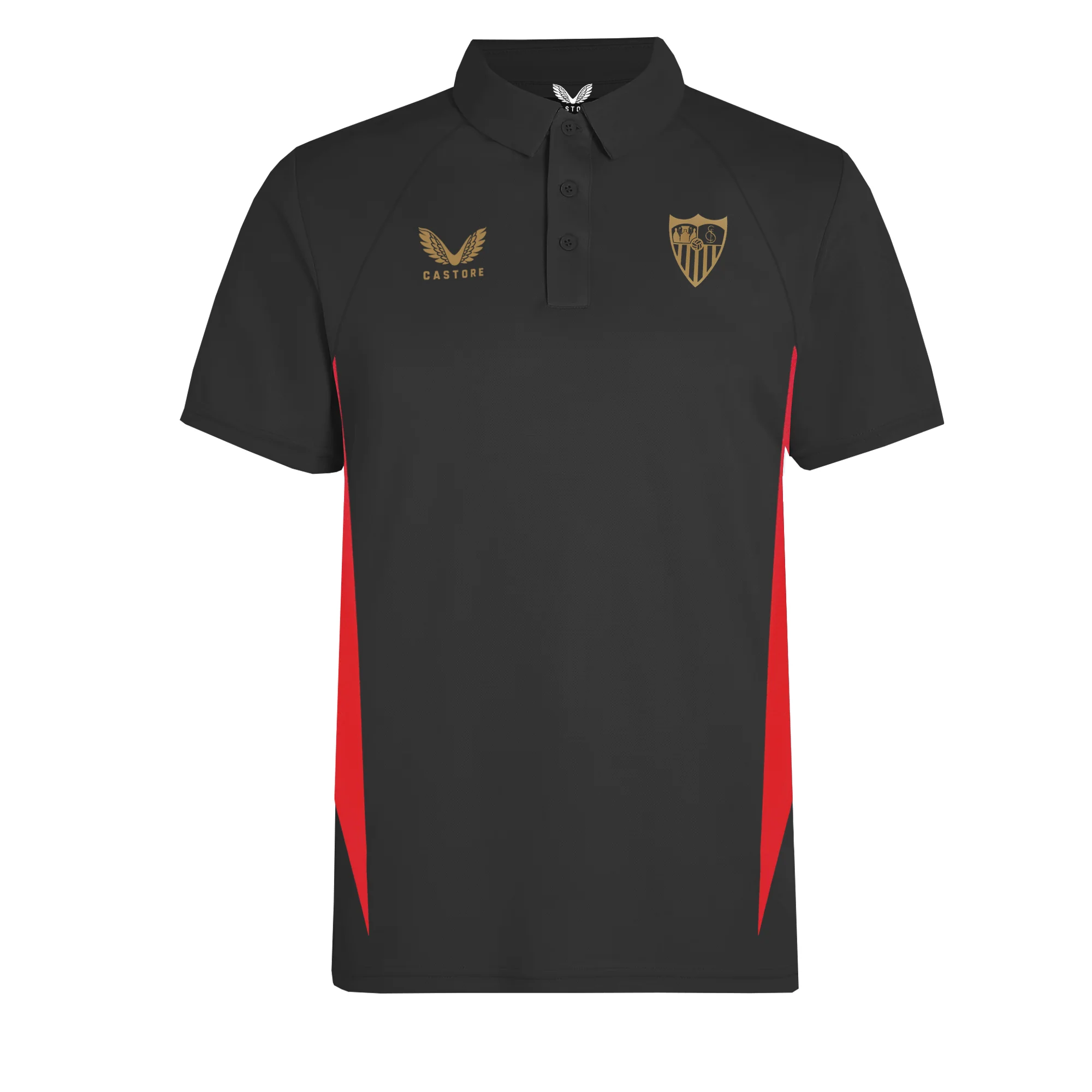 Sencillo y elegante polo blanco de algodón para niños. Con botones en el cuello, manga corta y la silueta del escudo del Sevilla Fútbol Club bordado en rojo en el pecho. Perfecto para que los más pequeños luzcan su sevillismo en cualquier ocasión.