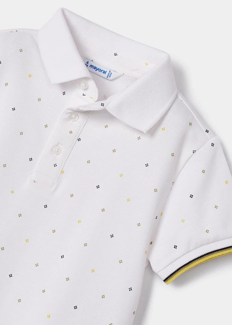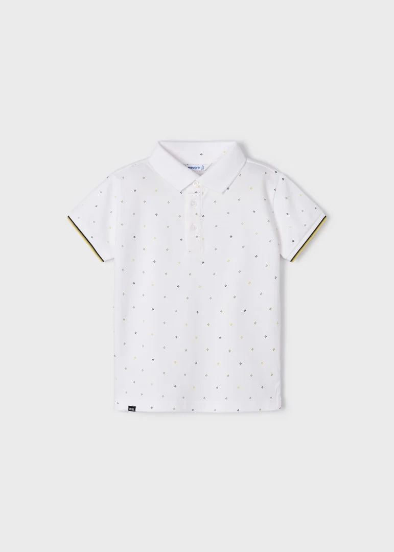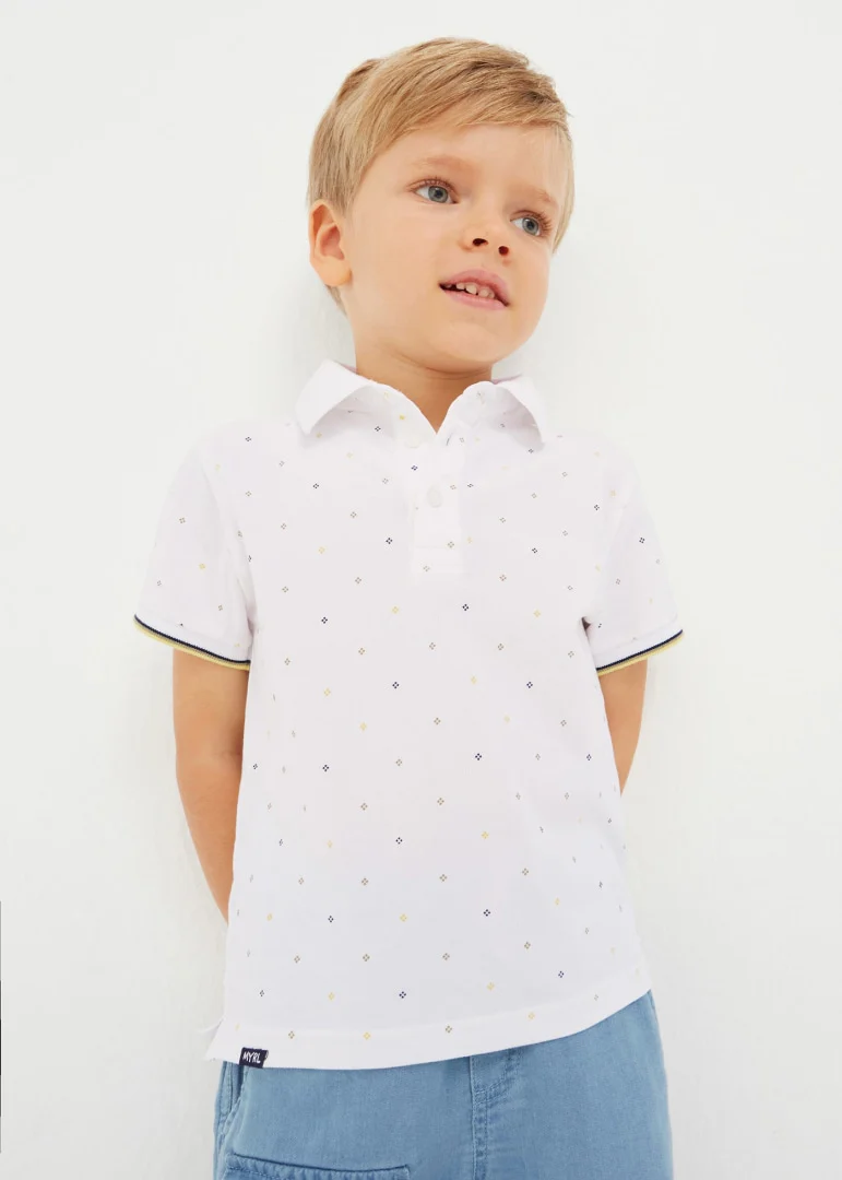 Polo de cuello camisero, manga corta con detalle en la orilla, cierre con botones en la parte delantera y estampado. Tejido fluido para una máxima comodidad en el dÃa a dÃa.