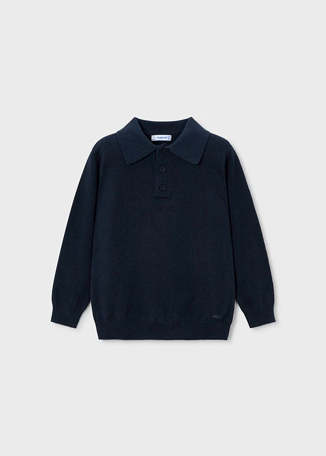 ¡Divina polo de tela tipo sueter ligero en color liso! De manga larga, cuello camisero y botones delanteros para facilitar su puesta.