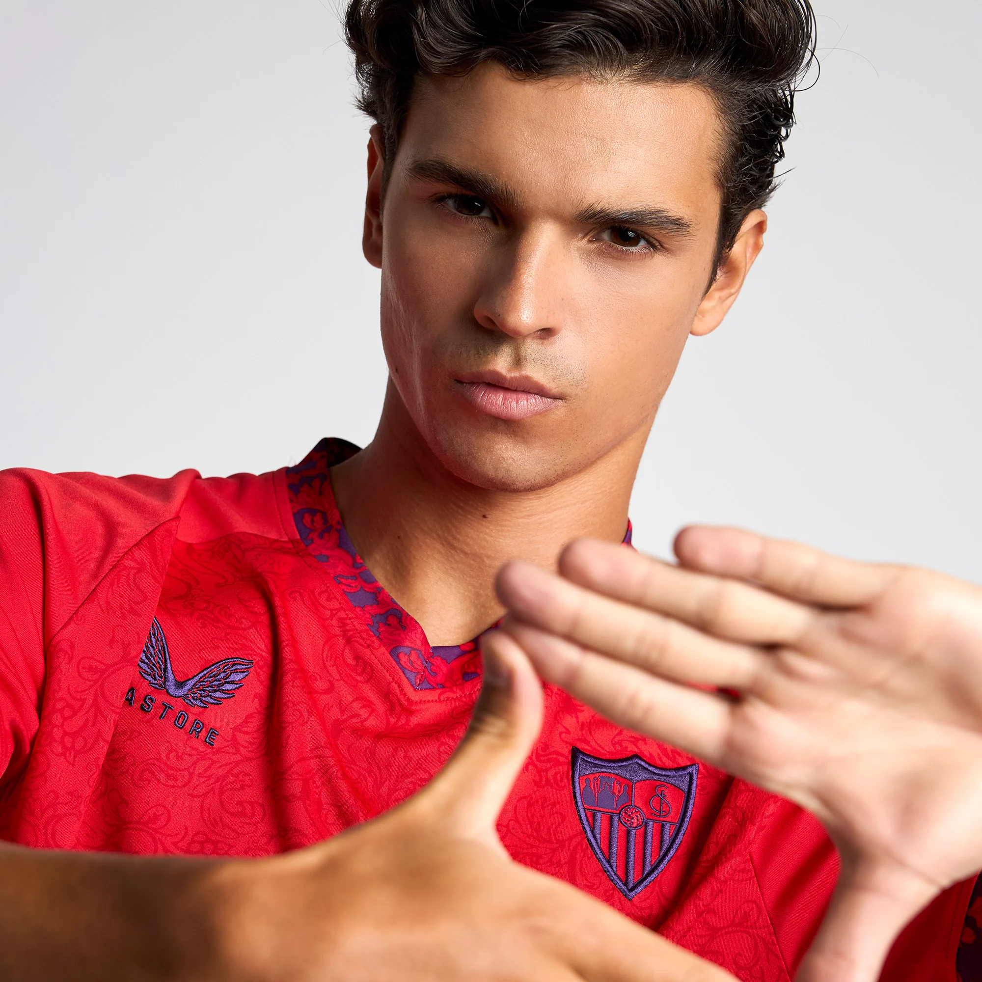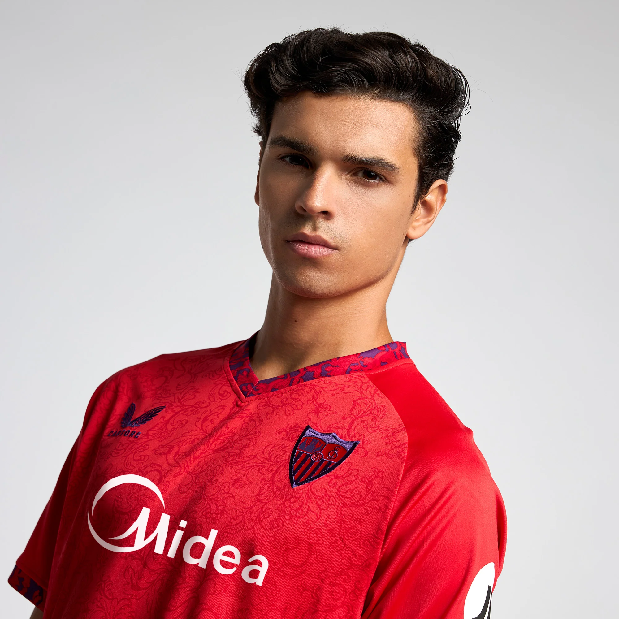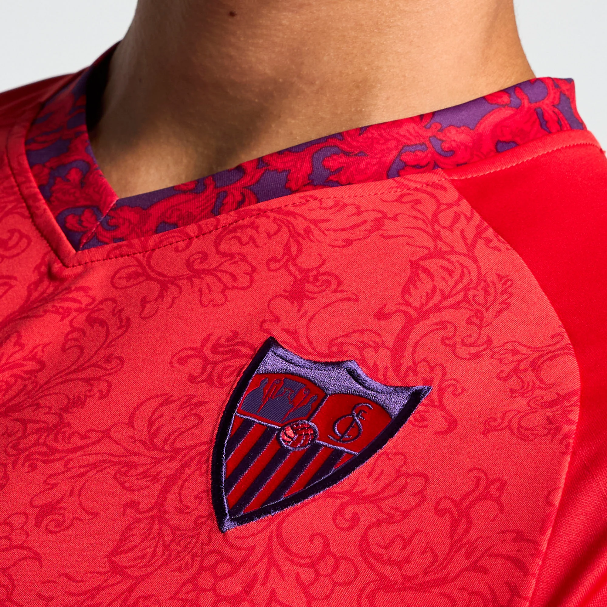 La Camiseta Roja Oficial de la Segunda Equipación del Sevilla Fútbol Club para adultos de la temporada 24/25.