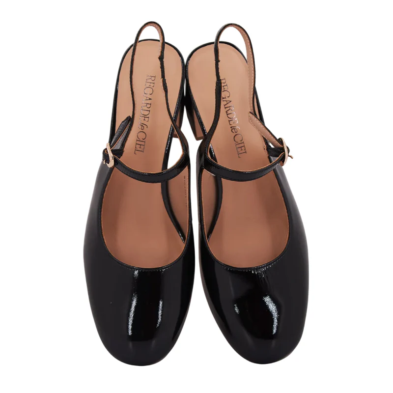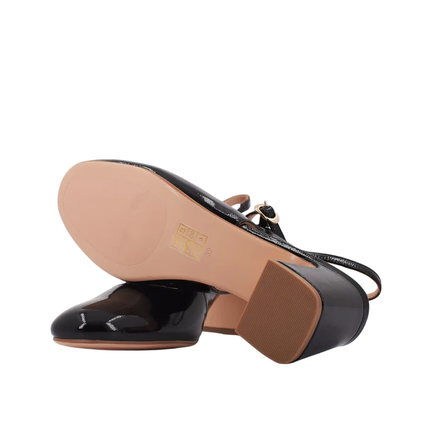Zapato salón destalonado con una combinación armoniosa de estilo chic, comodidad y elegancia. El modelo está elaborado en piel Twinkle negra, con costuras acentuadas a lo largo de la parte superior. Tacón de 61 mm. Hebilla lateral para un mejor ajuste. Adorno de hebilla que crea un look elevado.