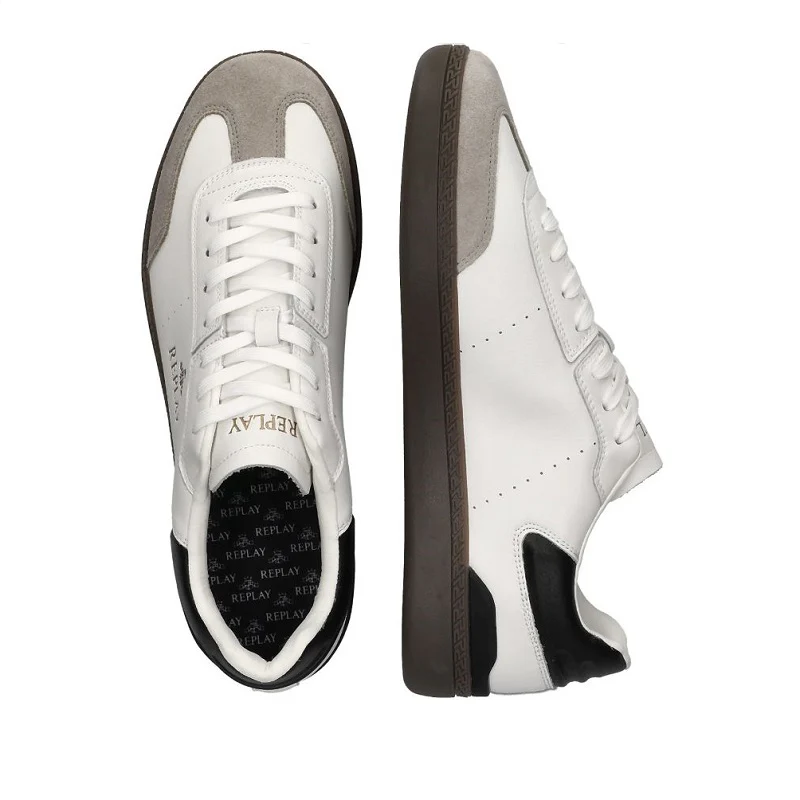 Zapatillas Pyper M con cordones de piel suave en color liso con perforaciones laterales. Las letras Replay están estampadas tanto en la lengüeta como en el lateral, acompañadas del logotipo.