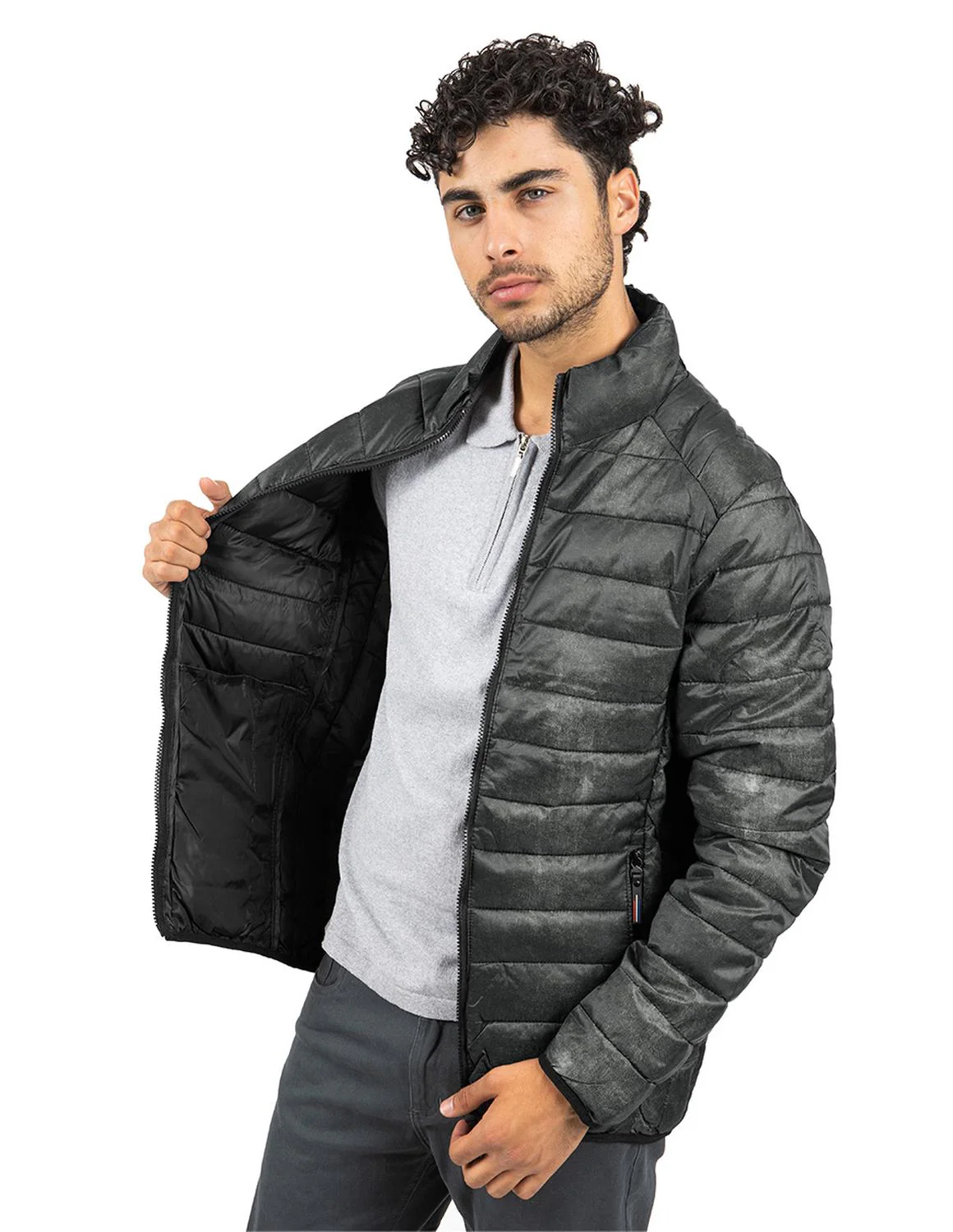 - Chamarra capitonada con cuello alto, bies elastico en puños, ruedo, cierre frontal y en bolsillos laterales.Â