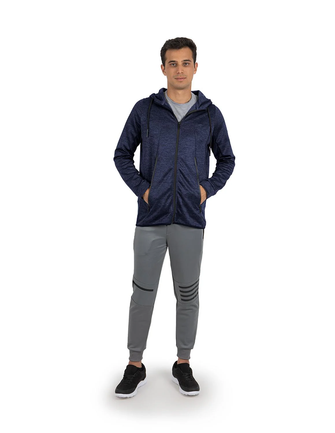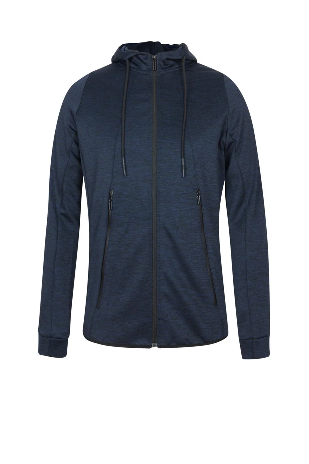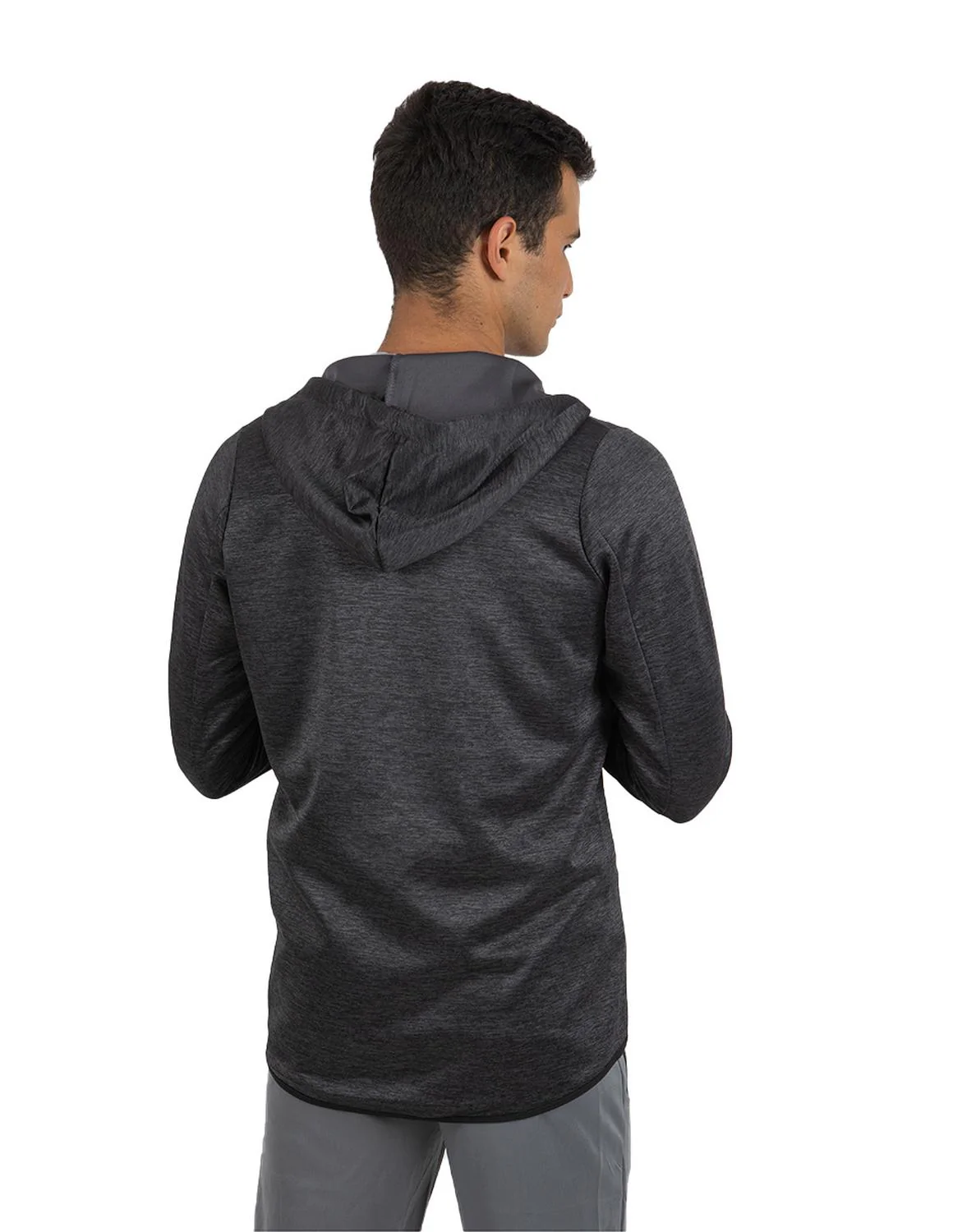 - Sudadera, capucha con jaretas ajustables, detalles en contraste de material, cierre frontal y en bolsillos laterales.