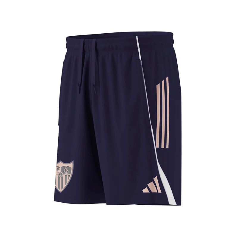 Entrena como los jugadores del Sevilla Fútbol Club con estos shorts azul con bolsillos para adultos, con detalles laterales y escudo del Club en color salmón, pertenecientes a la Colección Oficial de Entrenamiento de la Temporada 25/26.