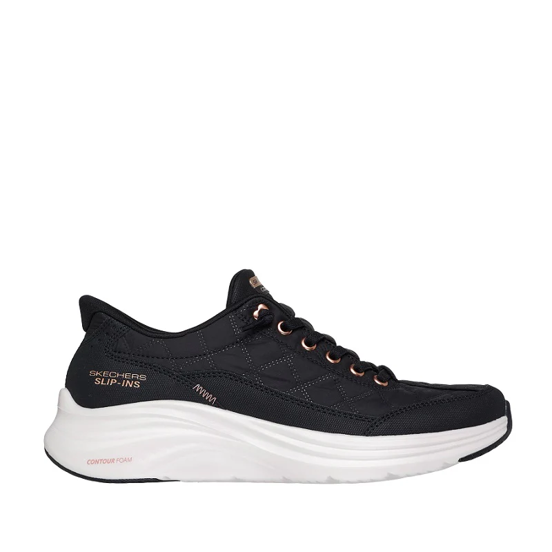 Las deportivas Skechers Contour Foam – Golden Hour en color negro combinan un diseño estiloso con la comodidad que ofrece la tecnología exclusiva Skechers. Fabricadas en tejido textil, son ligeras y planas, ideales para un uso casual diario. Su estructura brinda soporte óptimo y confort duradero, convirtiéndolas en una opción versátil para quienes buscan estilo y funcionalidad en unas sneakers deportivas.