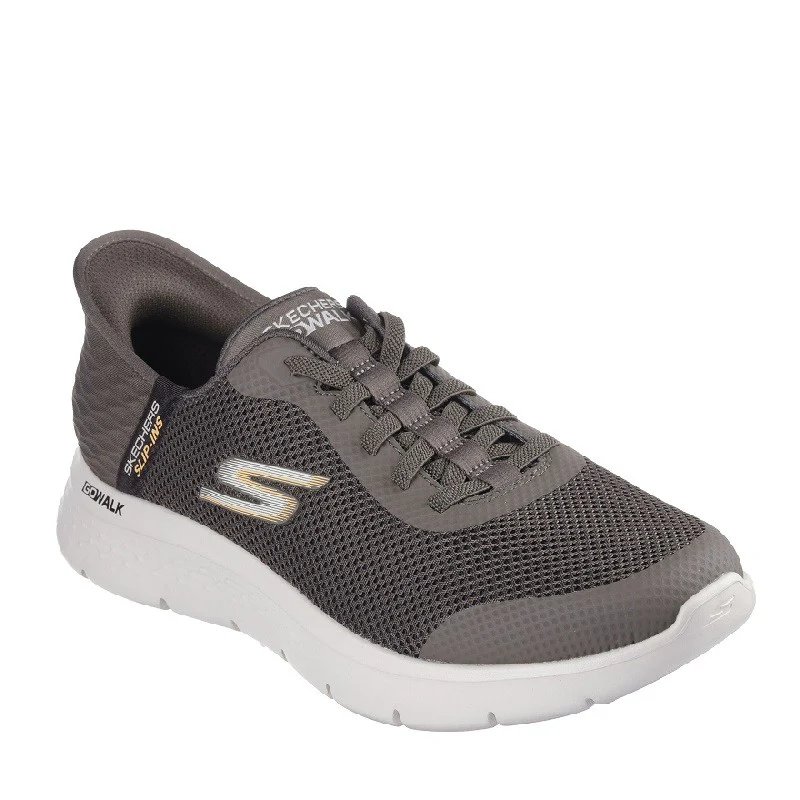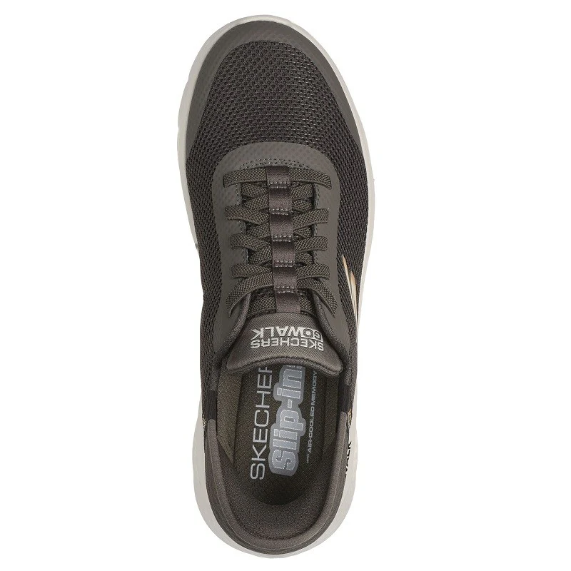 Con Skechers Hands Free Slip-ins® GO WALK® Flex – Hands Up, solo tienes que dar un paso para sentir su comodidad, flexibilidad y estilo. Diseñado con nuestro sistema exclusivo Heel Pillow™, este modelo con cordones elásticos cuenta con una parte superior de malla y detalles sintéticos termosellados, una plantilla Skechers Air-Cooled Memory Foam® y media suela ligera ULTRA GO® con amortiguación.