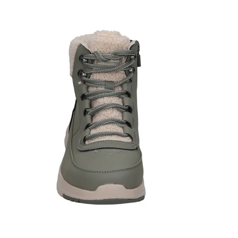 Descubre los Botines Waterproof Skechers On-the-GO Stellar Alpine Adventure en un tono verde. Diseñados específicamente para la mujer moderna, estos botines conjugan estilo y funcionalidad. Cubiertos con un material exterior de polipiel resistente al agua, prometen mantenerte seca sin interrumpir tu rutina diaria. El tipo de cierre de estos botines combina versatilidad y seguridad ofreciendo una opción de cordones y cremallera. Contienen un suave material interior textil que te garantiza comodidad al andar. Estos botines de estilo casual y cómodo incluyen una sola plana hecha de material sintético resistente para mayor durabilidad. Los botines Waterproof Skechers son la elección perfecta para quien busca calzado plano que defina un estilo propio.