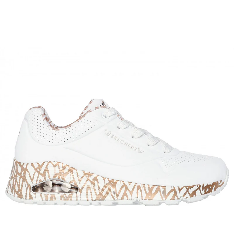 Descubre la colaboración exclusiva entre Skechers y el muralista James Goldcrown con las zapatillas Uno – Loving Love. Estas deportivas combinan el icónico diseño de corazones #Lovewall con una parte superior de durabuck sintético y ribete perforado para un estilo único. Su plantilla Skechers Air Cooled Memory Foam® ofrece comodidad durante todo el día, mientras que la cuña de plataforma con media suela Skech-Air® visible garantiza una amortiguación ligera y moderna. Camina con amor y estilo en cada paso con estas zapatillas que inspiran y destacan.