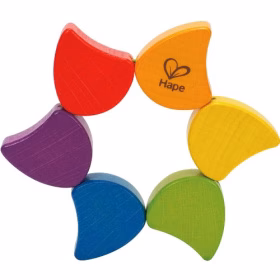 ¡Un rompecabezas, una sonaja y un arcoiris todo en uno! Cada segmento se puede dar la vuelta para cambiar la forma sin enredarlo, pintura duradera y segura para niños, construida de madera maciza ¡El juguete favorito de todos los niños!