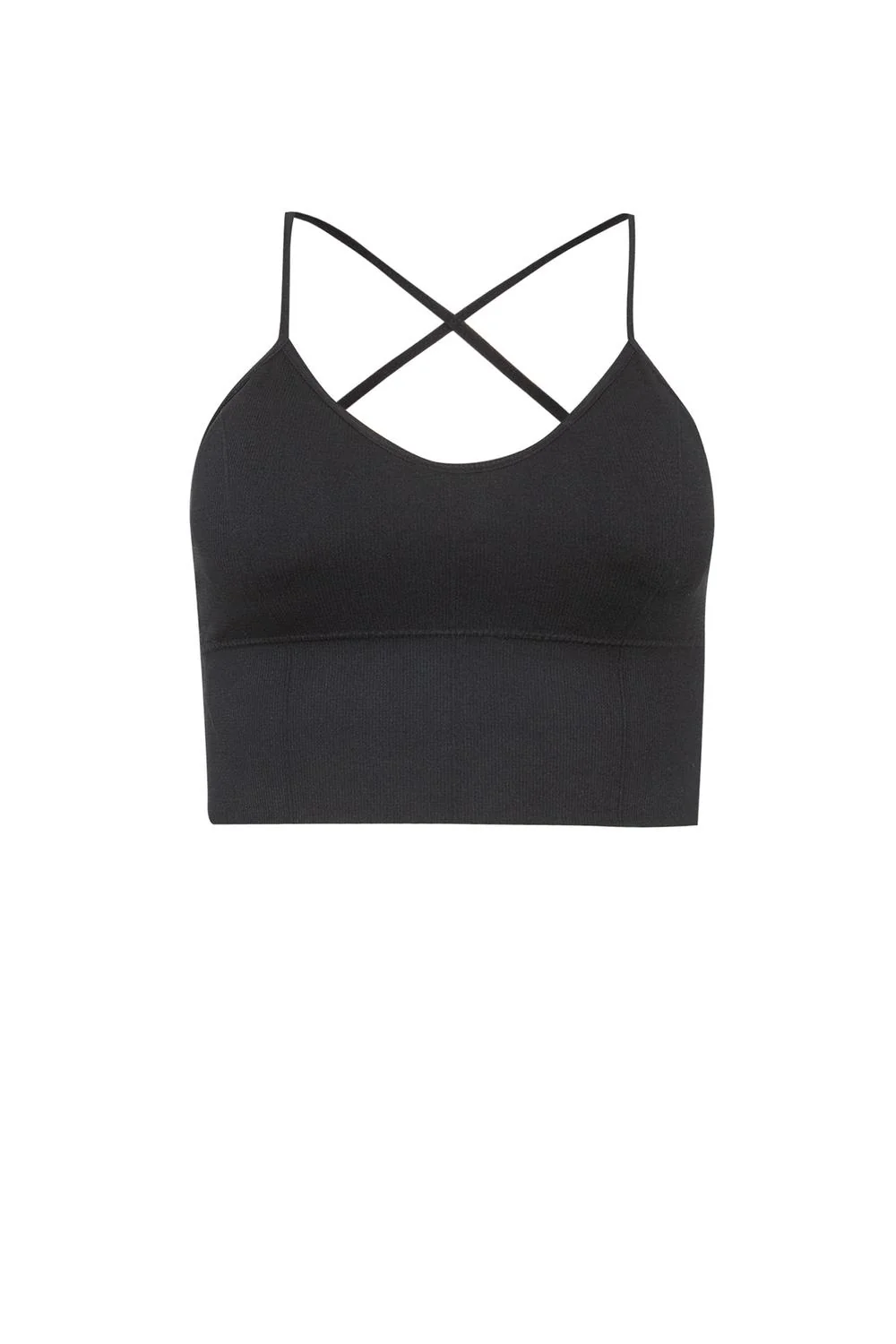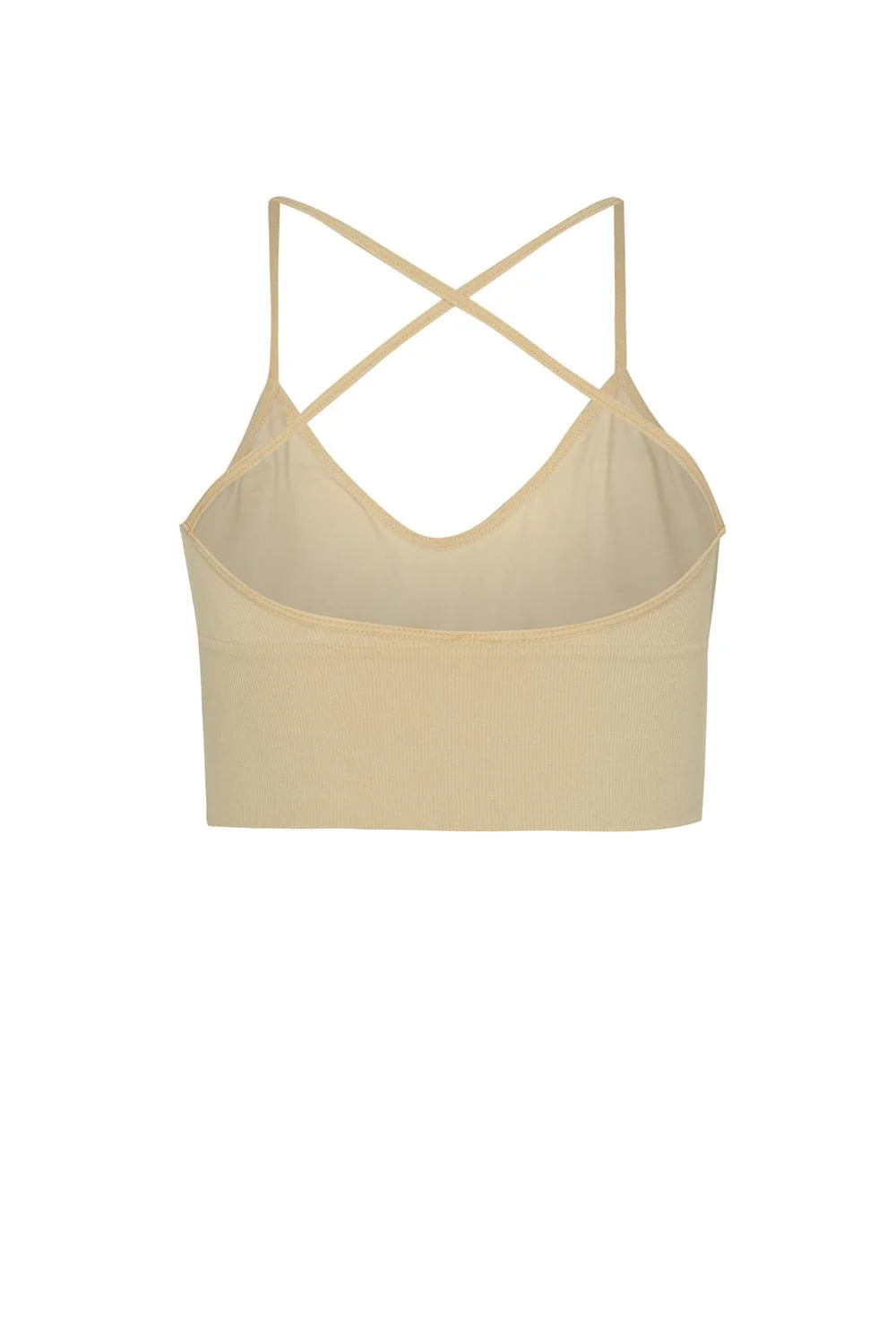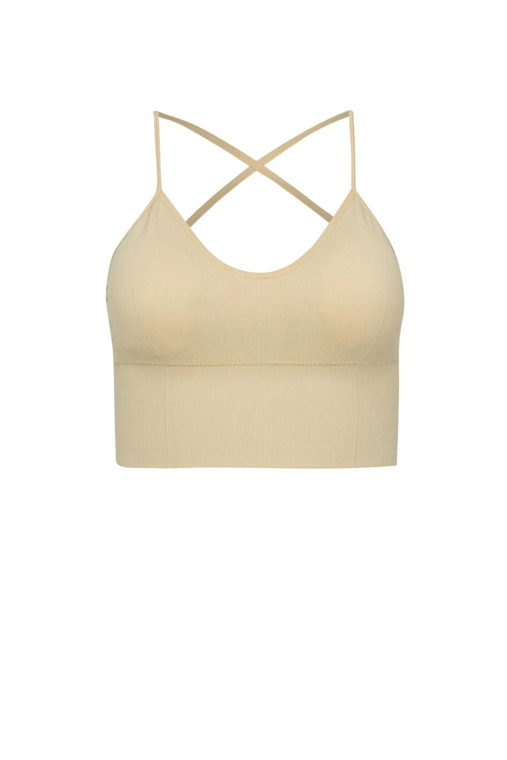 Sostén de corte ancho con tirantes delgados cruzados por detrás y copas removibles. 95-0008