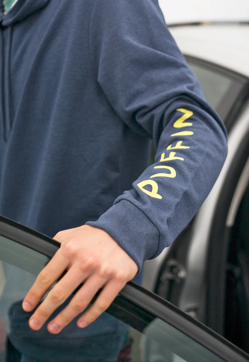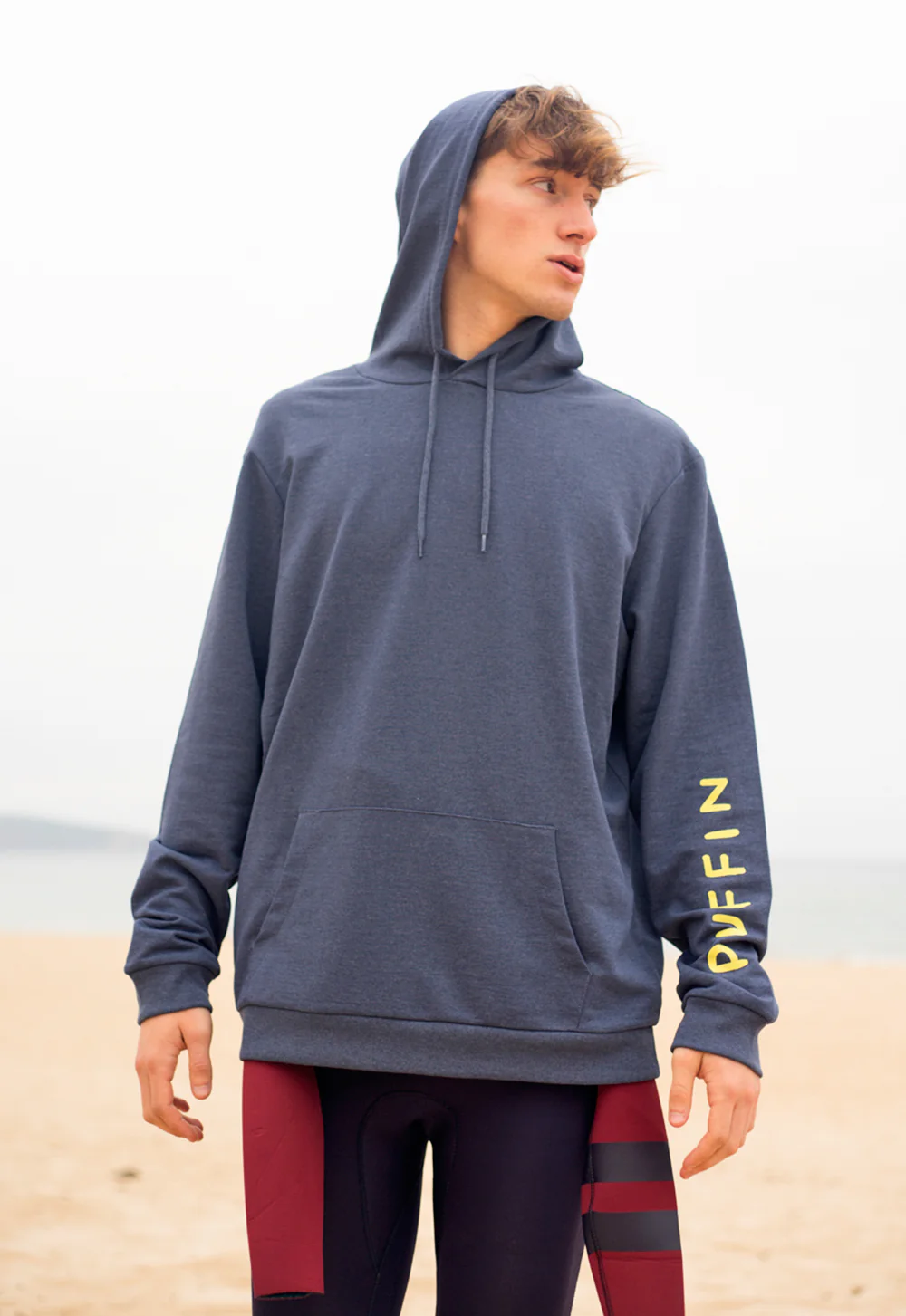 Sudadera con capucha ajustable color marino vintage, confeccionada en tejido 100% algodón orgánico