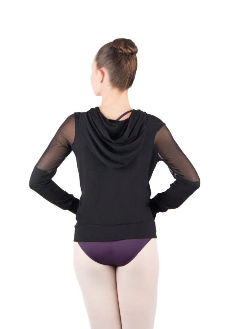 Sudadera de chandal para calentamiento de danza. El modelo Midori de Ballet Rosa es perfecto para entrar en calor en tus clases de danza o bien como uniforme para ir y venir a tus clases. Cómodo y sencillo. Con detalle en tull en las mangas. Tiene bolsillos en la parte delantera y cierre frontal con cremallera. También tiene capucha. El material bamboo hace que se adapte al cuerpo.