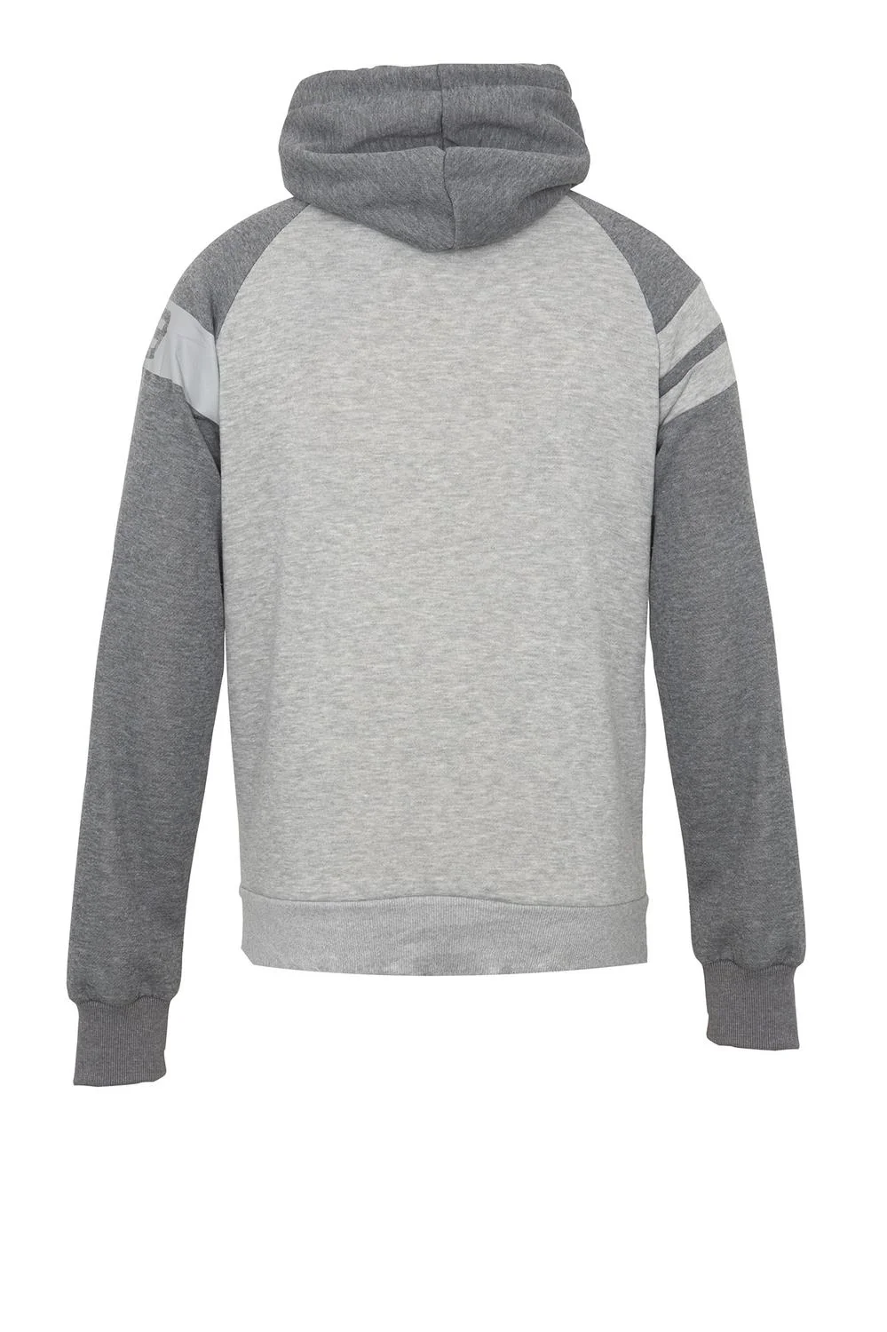 • Sudadera con capucha, jaretas ajustables, bolsillo delantero tipo canguro, detalles en contraste de color, rib en ruedo y puños.