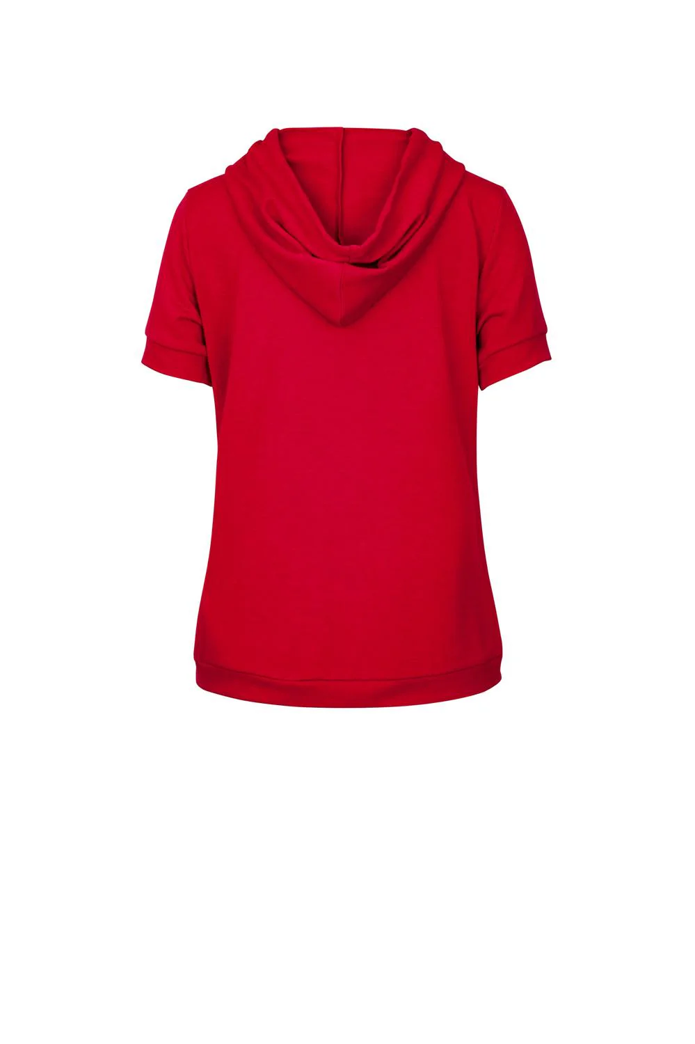 - Sudadera con gorro, mangas cortas, bordado al frente y jareta en contraste.