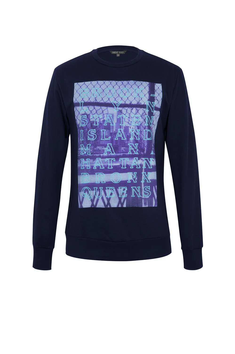 André Badi Sudadera con cuello redondo, serigrafía en delantero y mangas largas. Composicion50% Algodón 50% Poliéster Modelo 28-0131