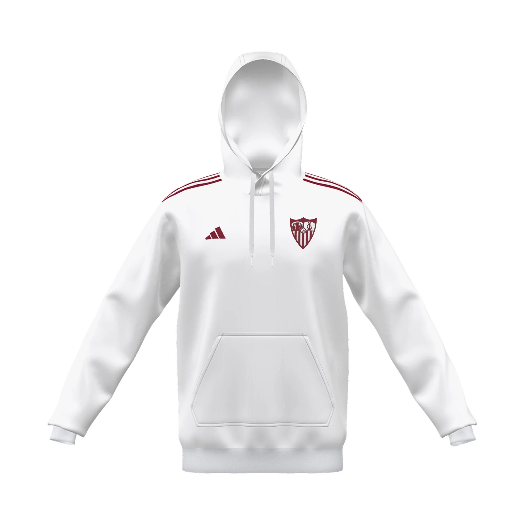 La sudadera blanca de entrenamiento para niños, con capucha y bolsillos de canguro, definitiva de la Colección Oficial del Sevilla Fútbol Club para la temporada 25/26. Lúcela en ocasiones casual con su elegante diseño con detalles laterales, sponsor técnico y escudo serigrafiados en negro en el pecho.