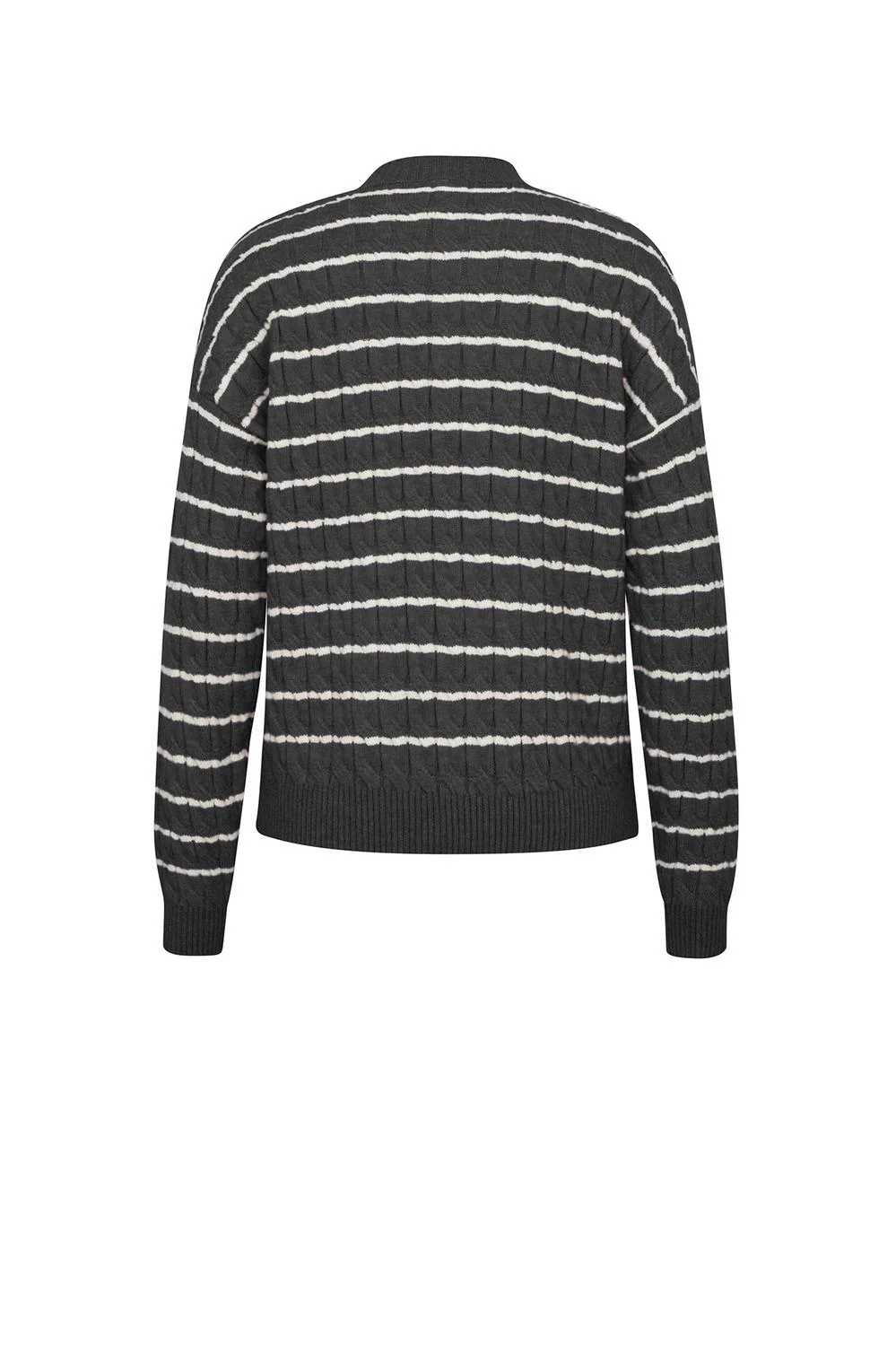 Suéter en combinación de colores con cuello redondo, corte de hombros caídos, tejido decorativo, mangas largas, rib en escote, puños y ruedo.