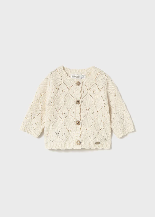 ¡Divino sueter de confección combinada en distintos tejidos para conseguir un diseño único y especial! De cuello con ondas, manga larga y cierre de botones en la parte delantera.