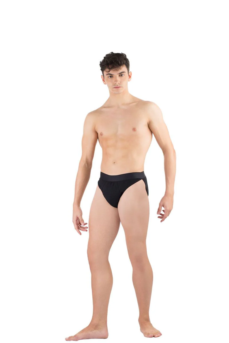 Suspensor de danza para chico. El modelo JAMES de Ballet Rosa es ideal para hombre en clase de danza. Calzoncillo con braga completa que se ajusta perfectamente al torso. Con cintura elástica de 4cm. Ideal para el entrenamiento del día a día.